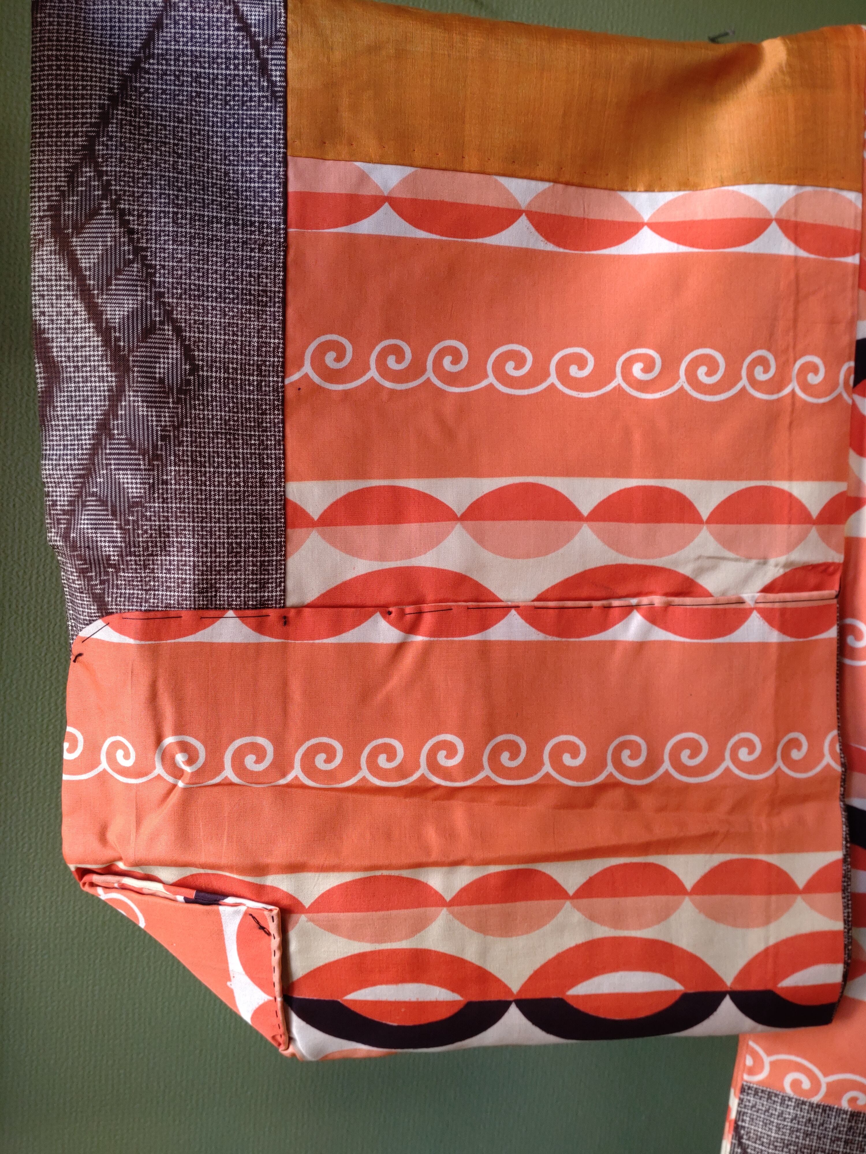お袖が内側で上げられており、糸をほどけば袖丈60cm程になると思われます。