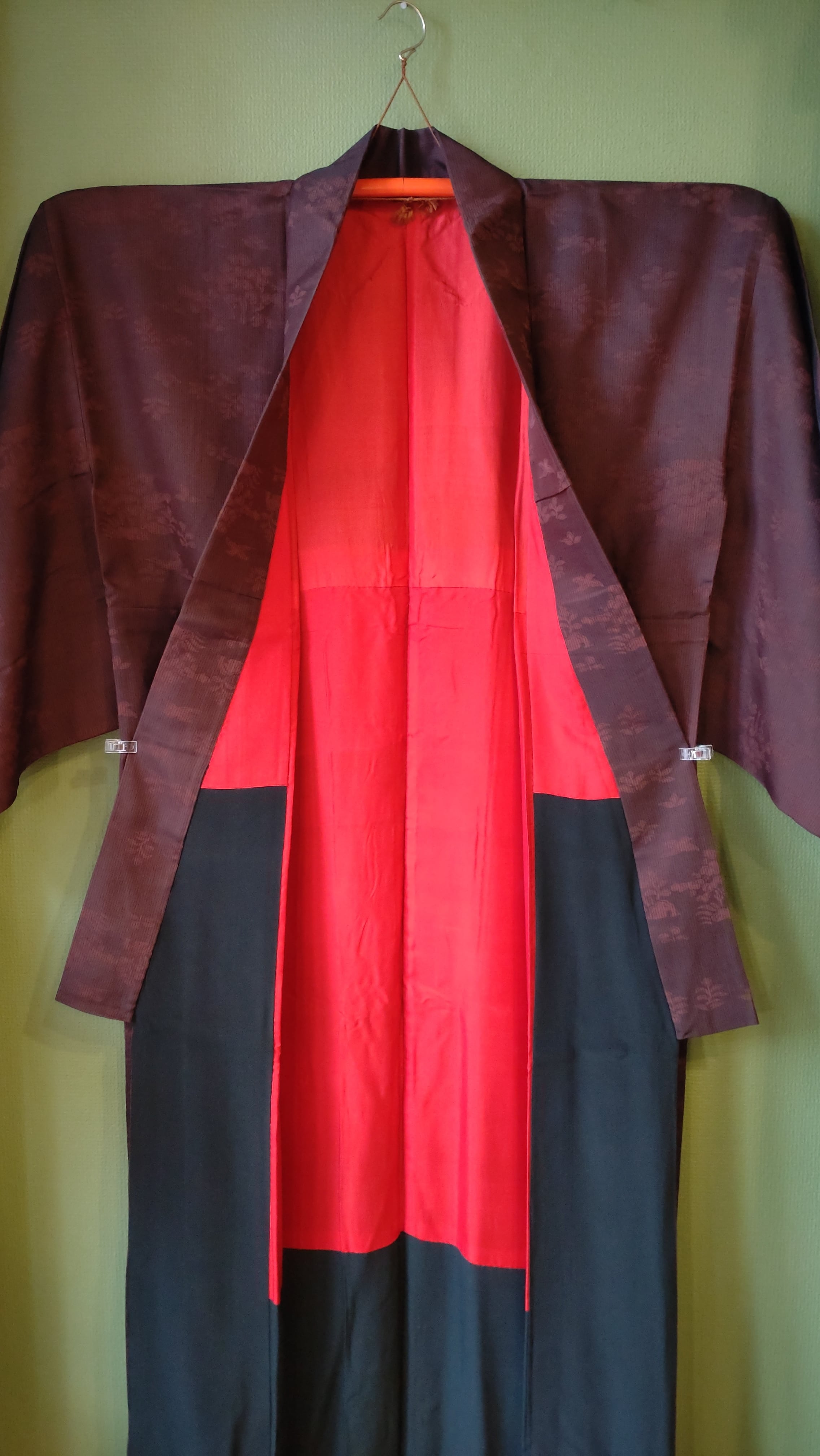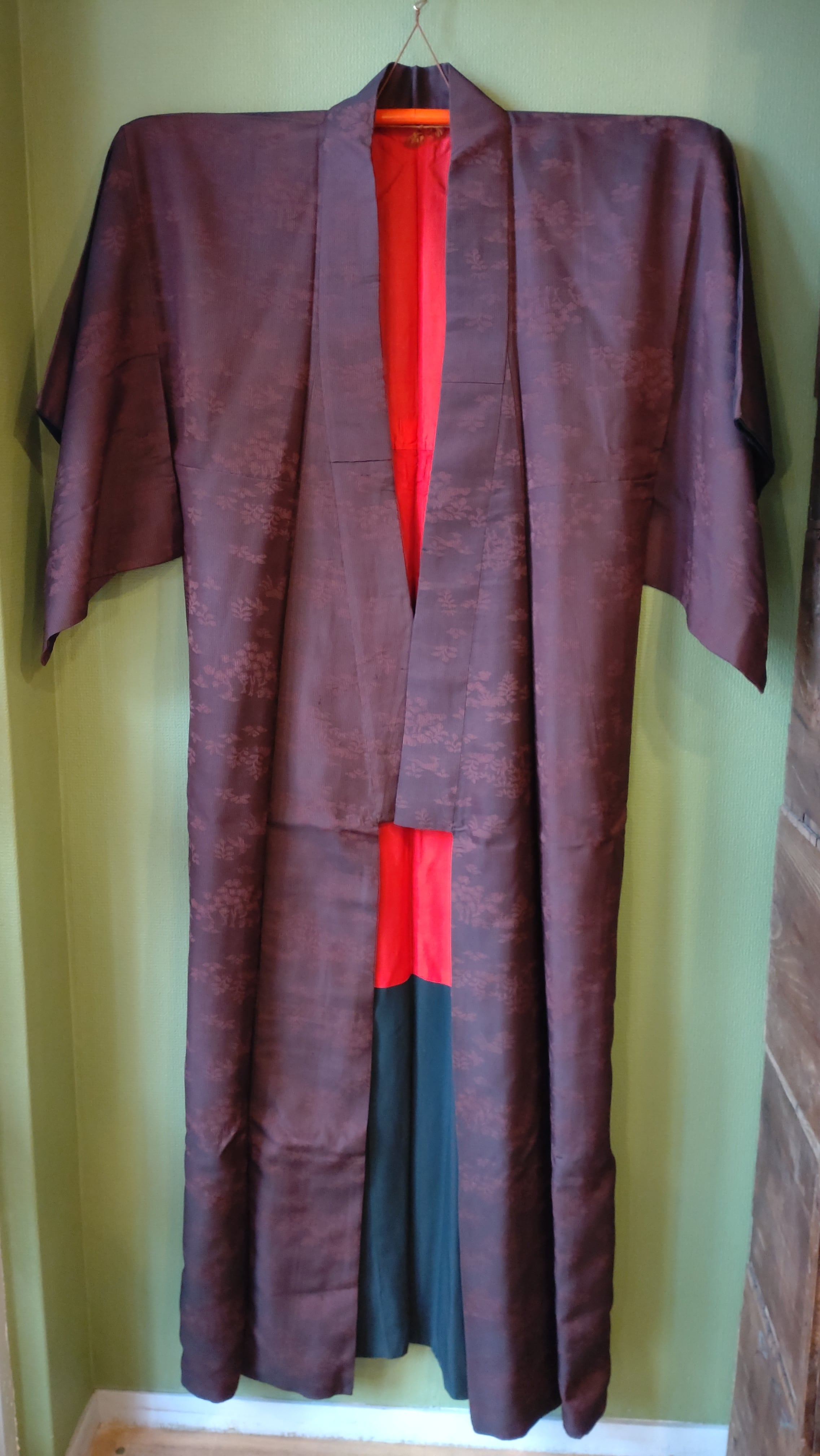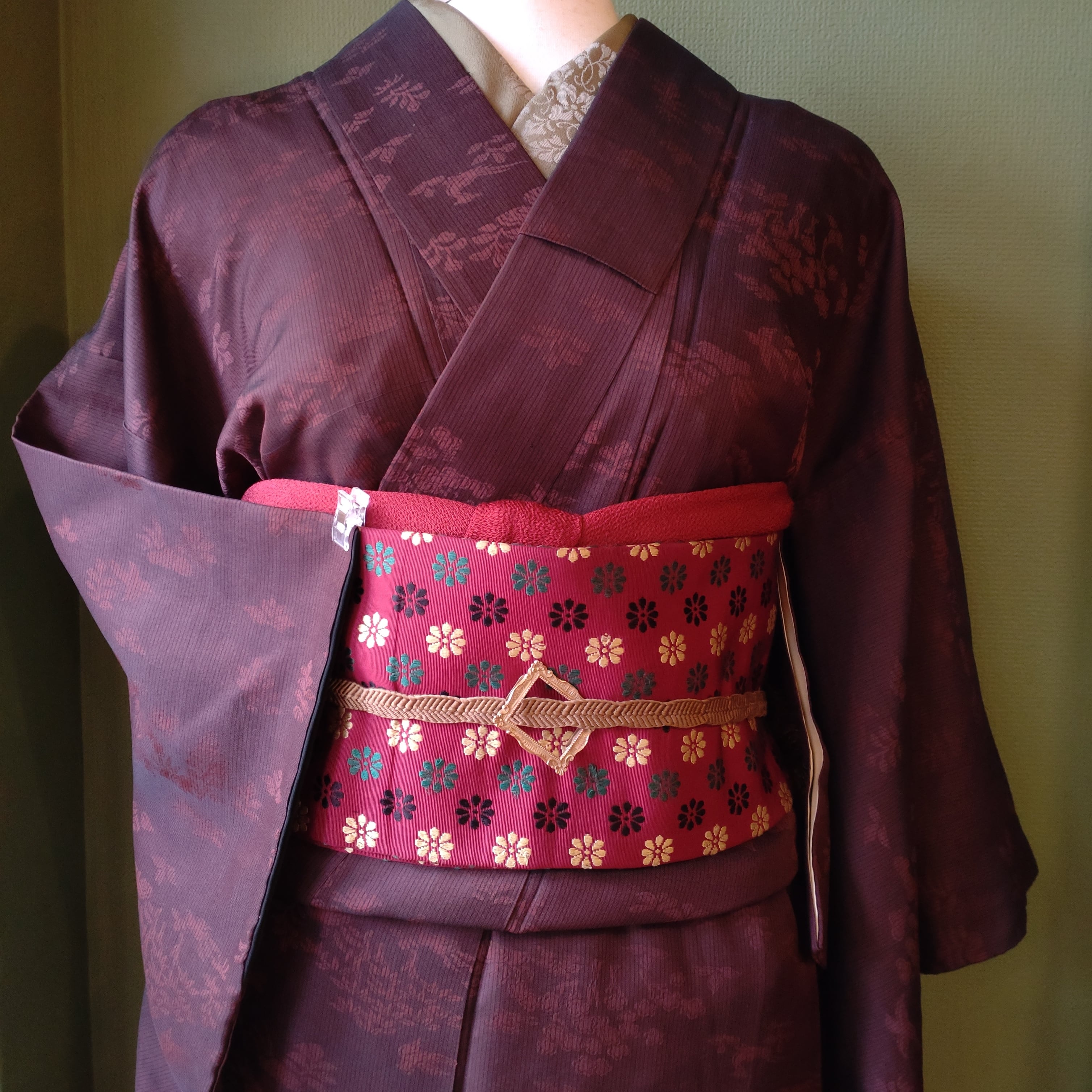 アンティークの袷着物です。落ち着いた色味によく見ると小さな鳥が。