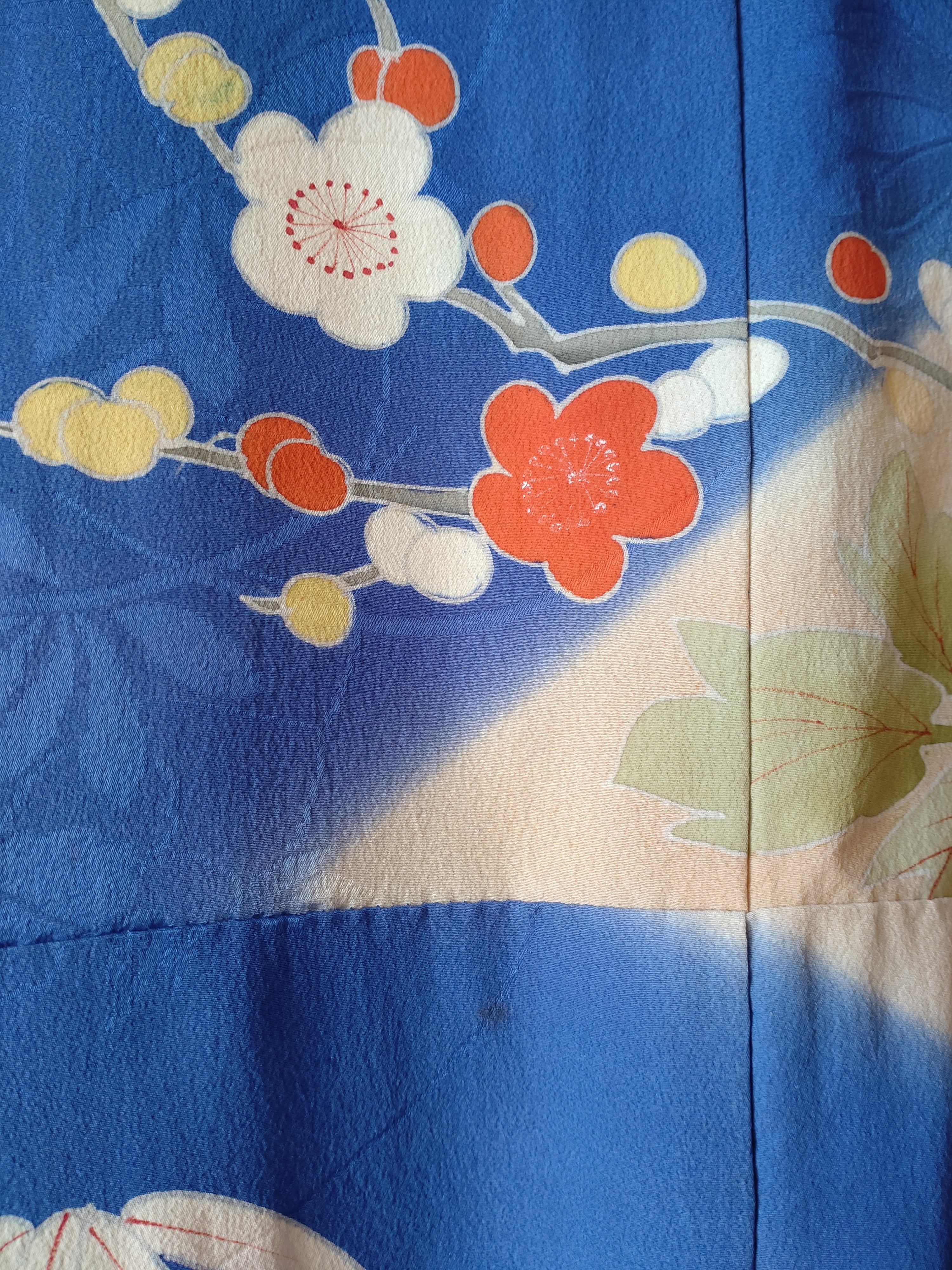 襟の折り目、お尻の縫い目あたりにやや汚れ・ヤケがあります。また裾にやや膨らみが見られます。画像をご確認の上ご理解いただける方にお願いいたします。