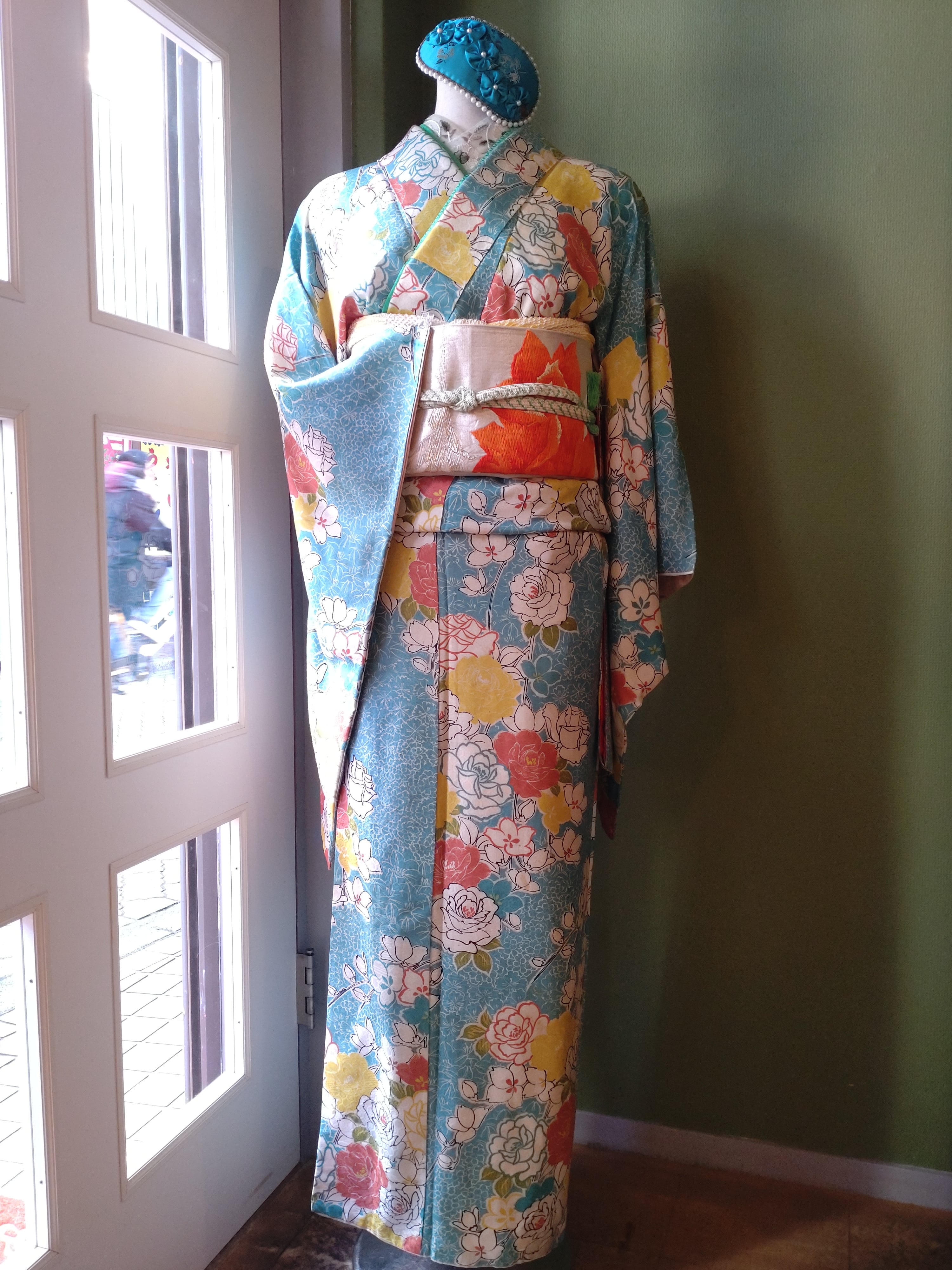 薔薇模様の袷着物です。
