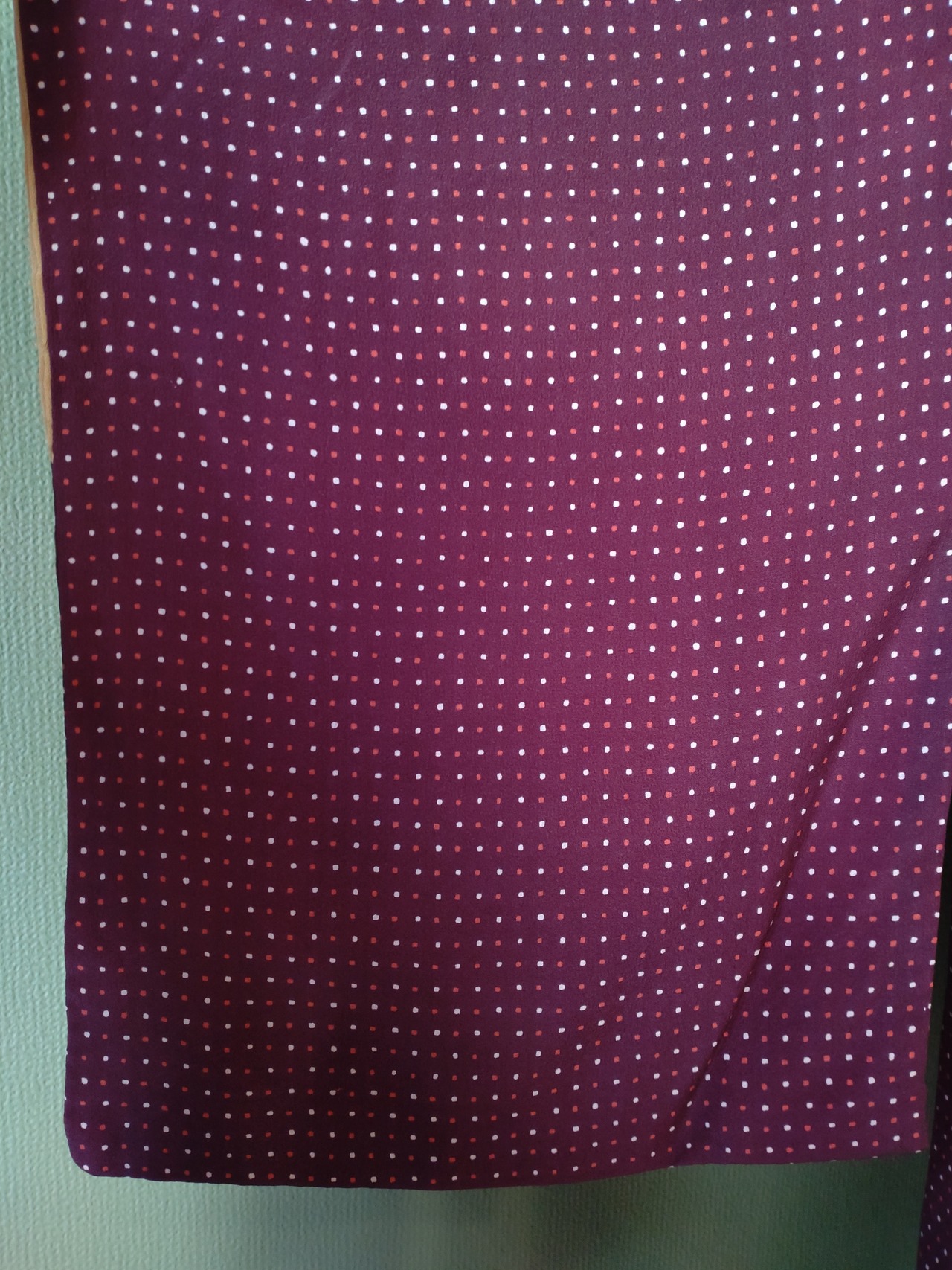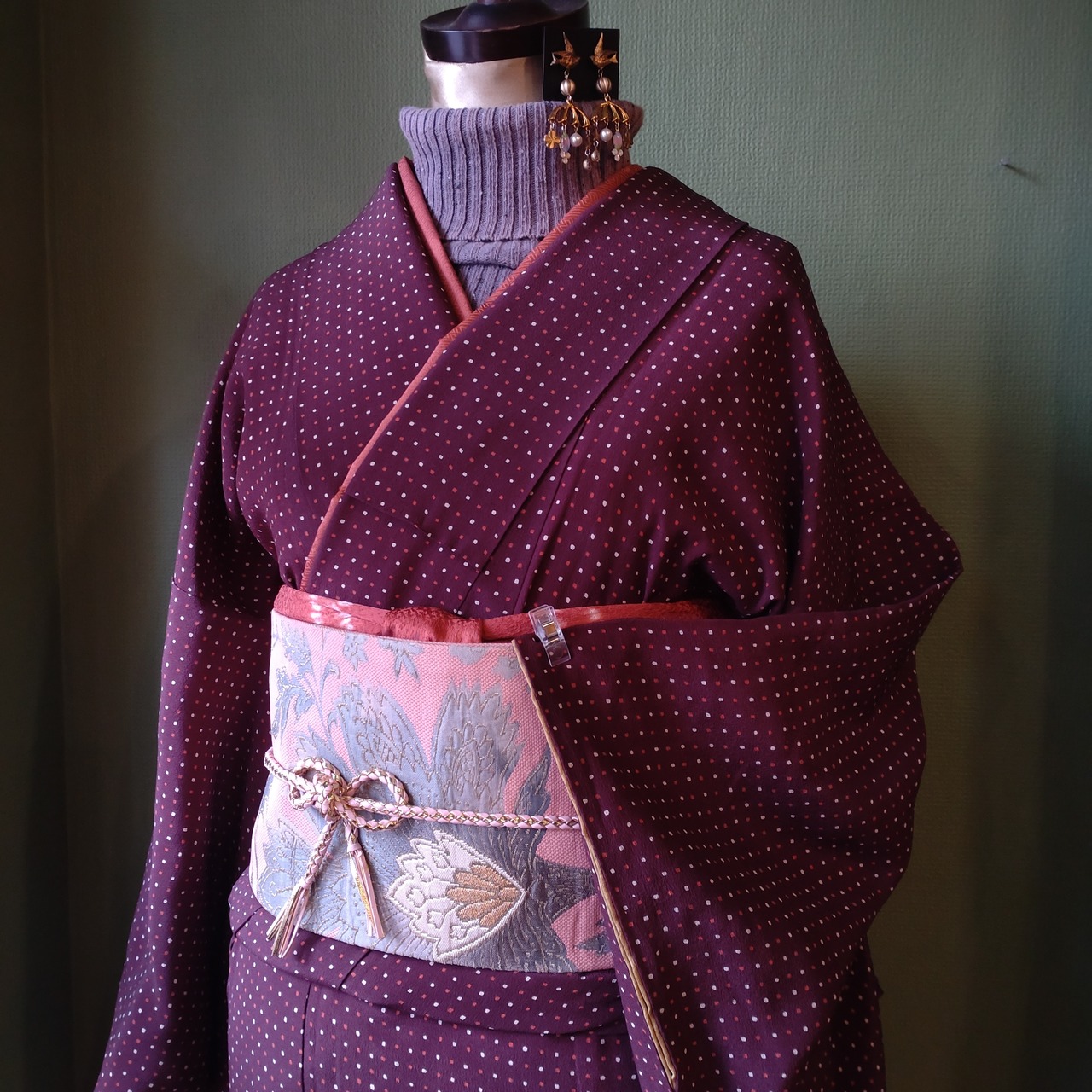 えんじに赤白のドットがシックでありながら可愛らしいデザインです。