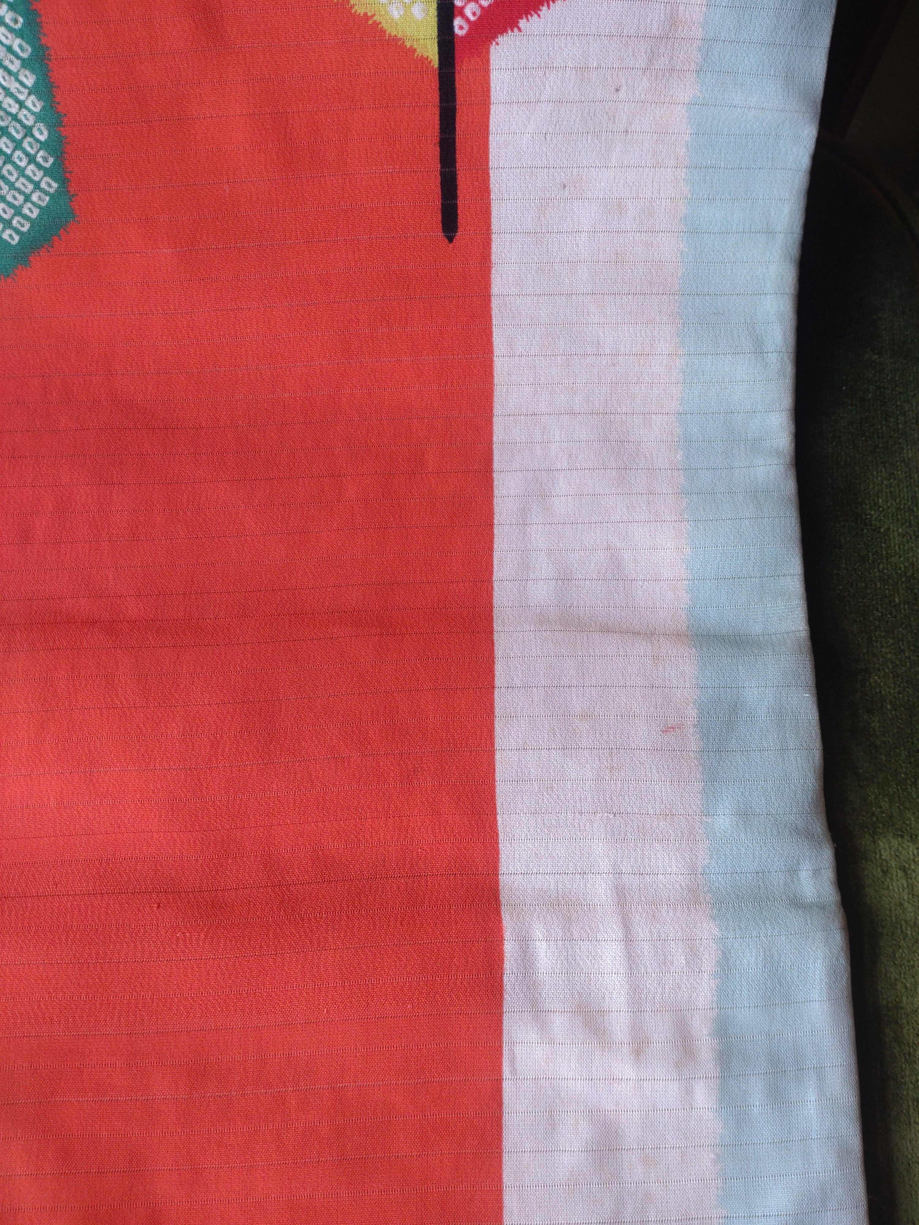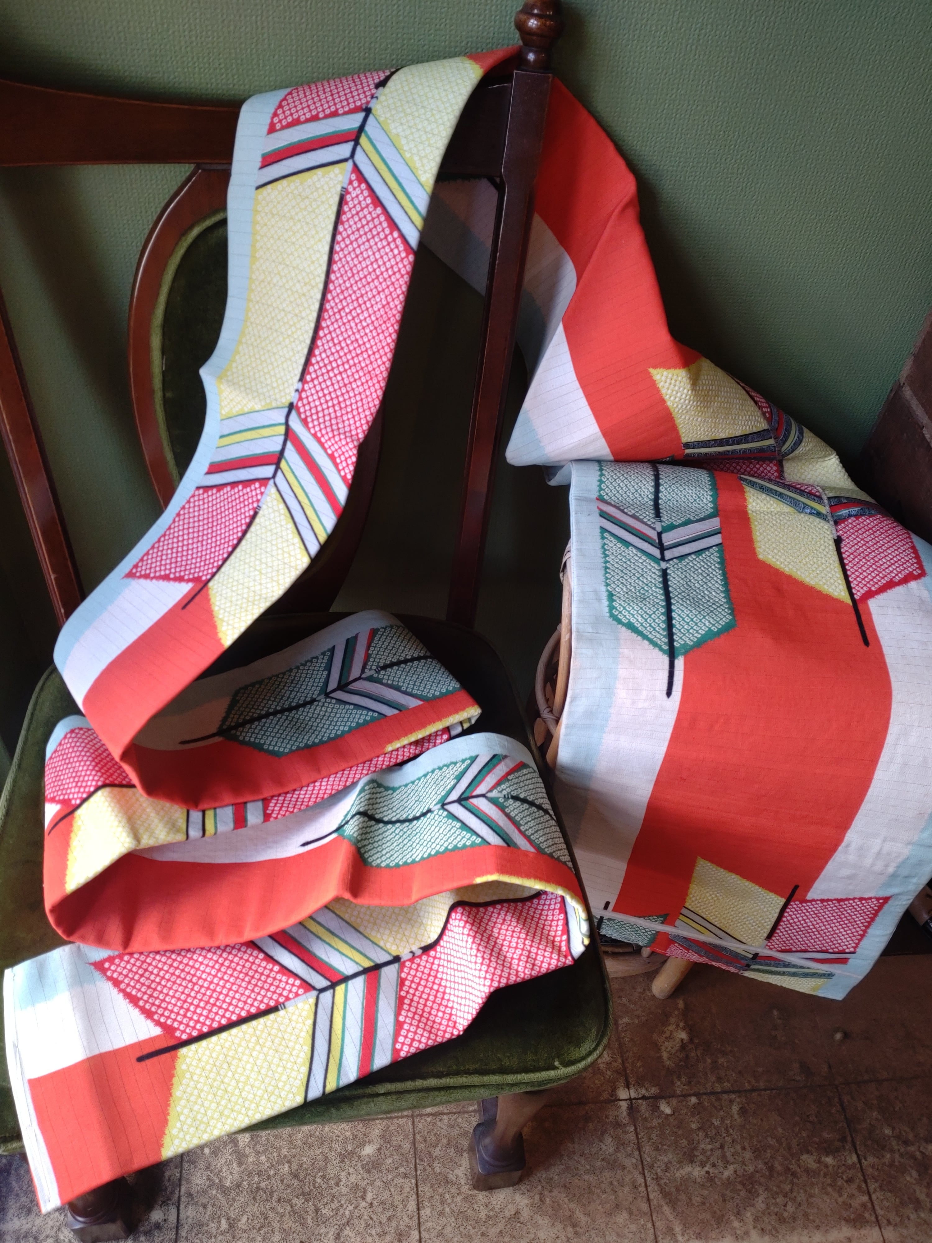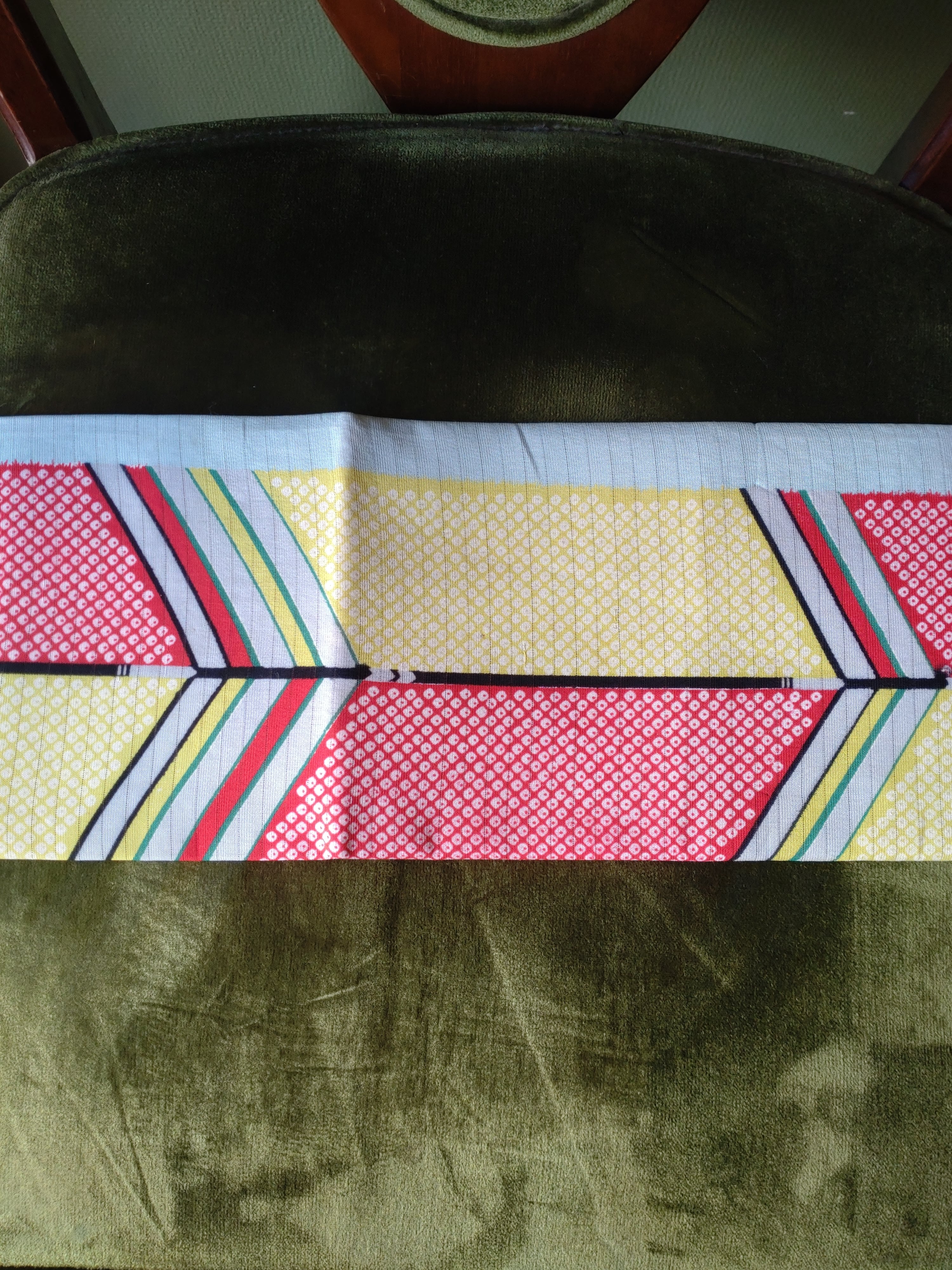 横縞織りにヴィヴィッドな矢羽根がグラフィカルなデザイン。
