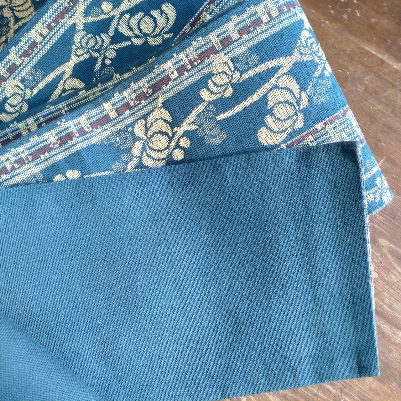 落ち着いたブルーに薄いクリーム色の蝋梅柄。