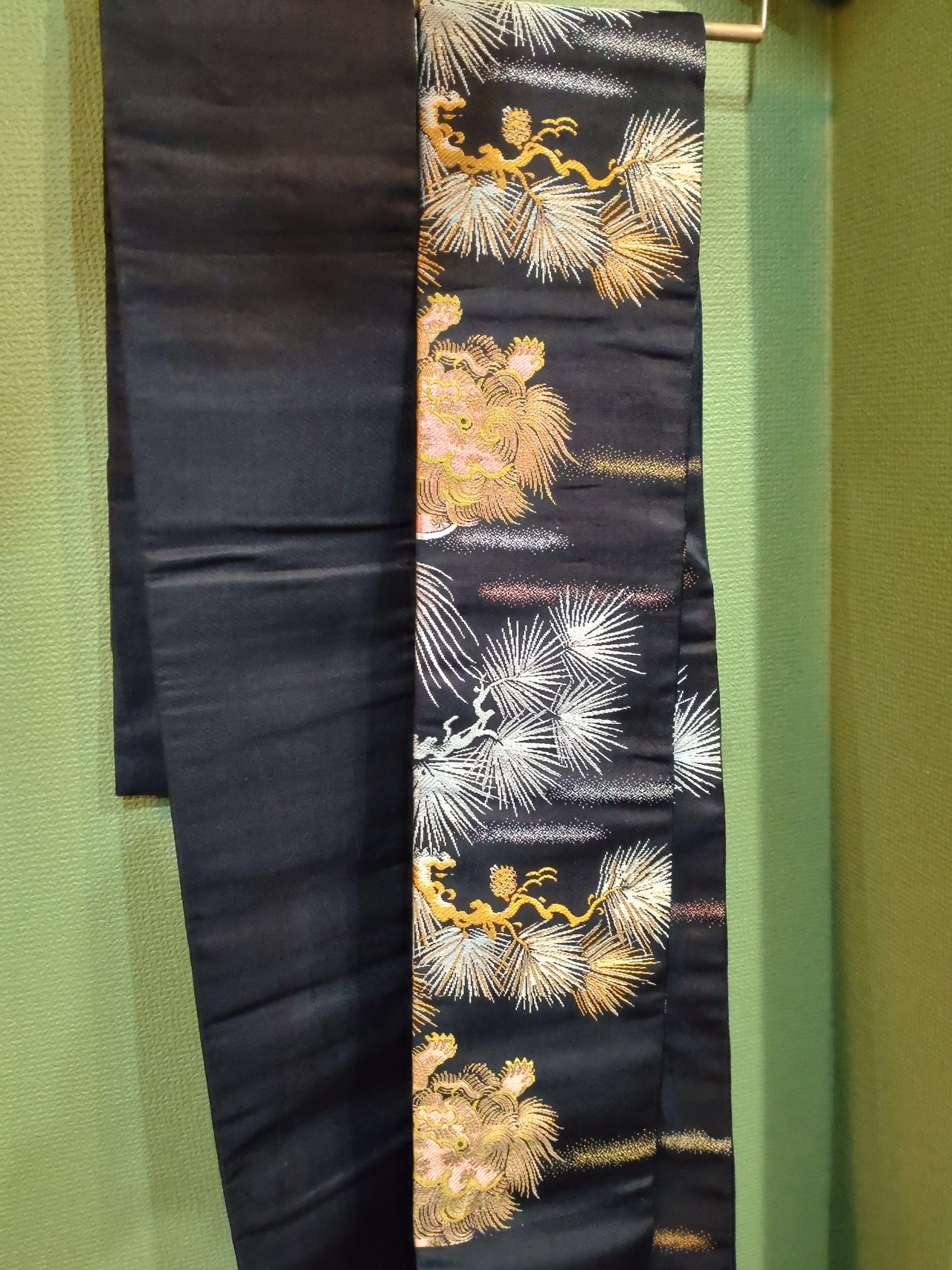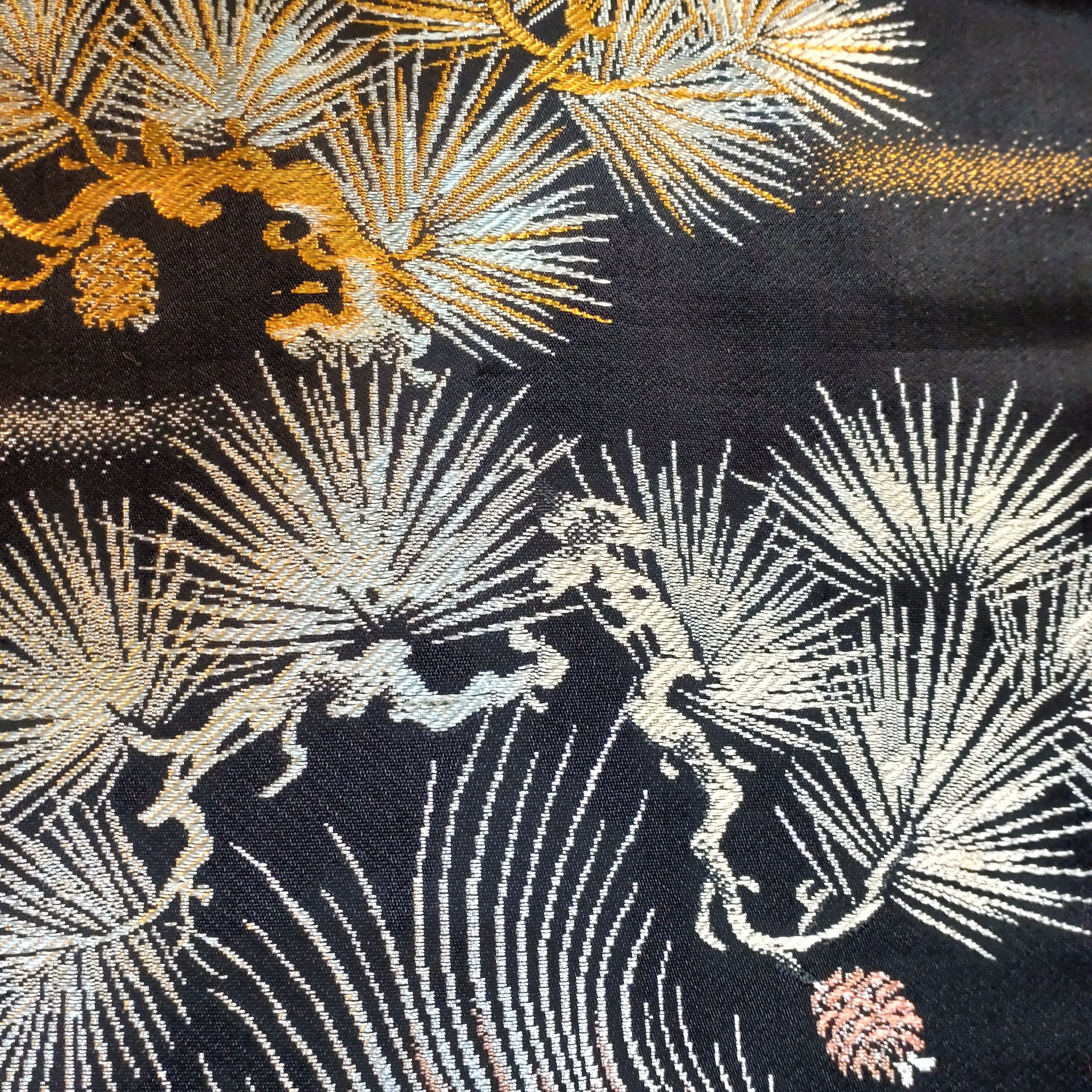 説明しなくても格好良い、松から躍り出る獅子が躍動感たっぷりのヴィンテージ名古屋帯です。