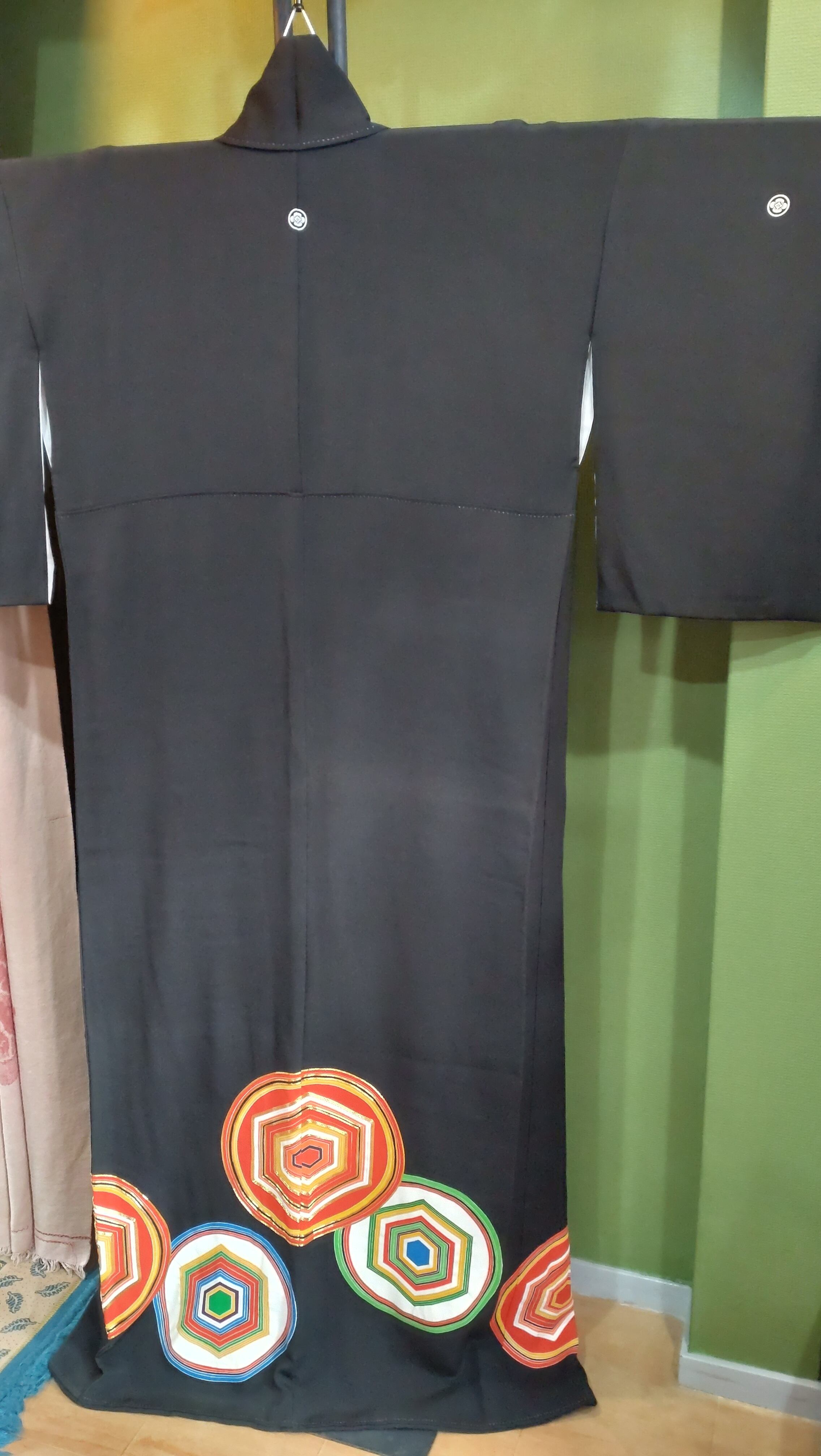よくある花や鳳凰ではなくビビットカラーの丸に亀甲模様というところがシビレます。