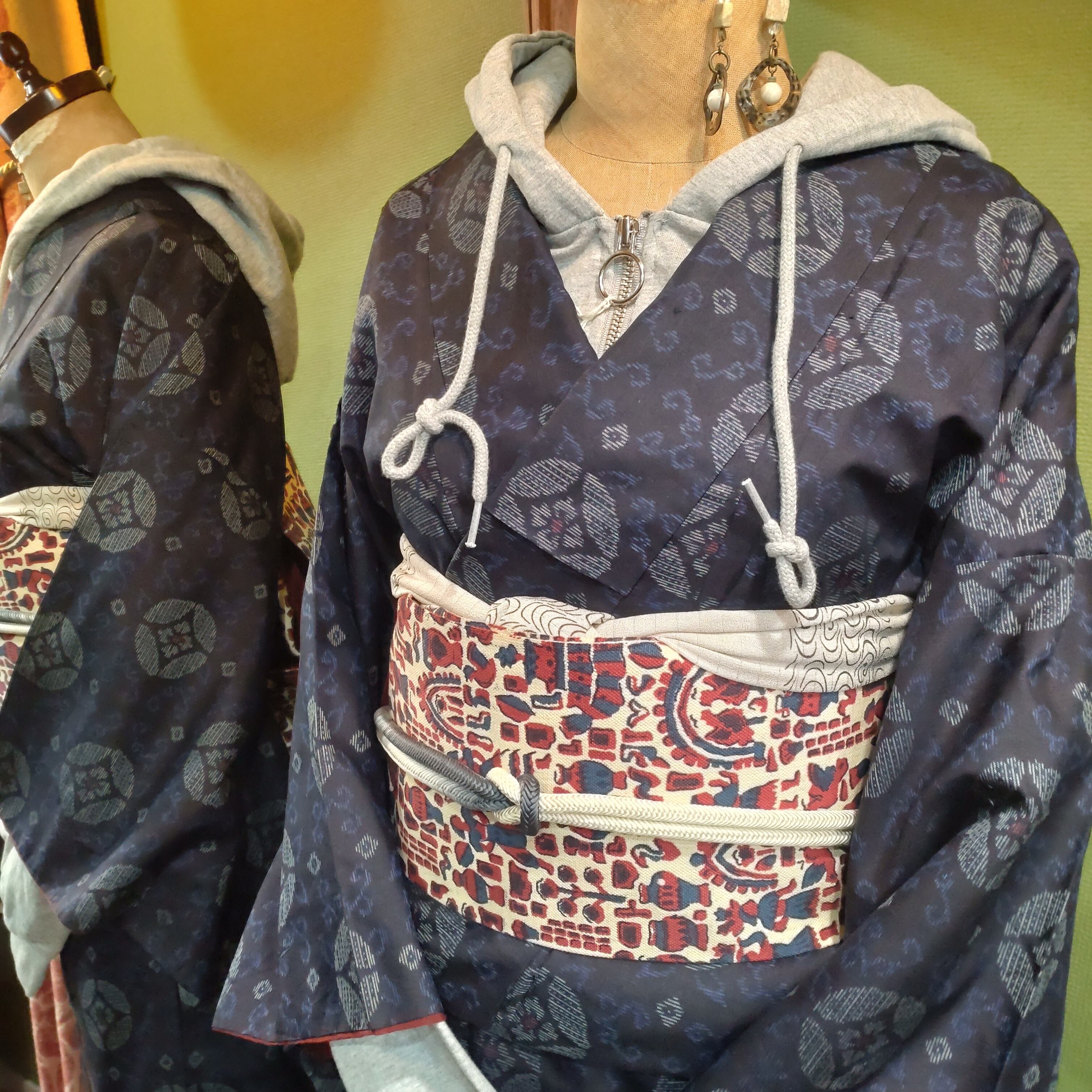 武士の文化から生まれた東京染めに、洋服のような柄が合わさった面白い一枚です。
