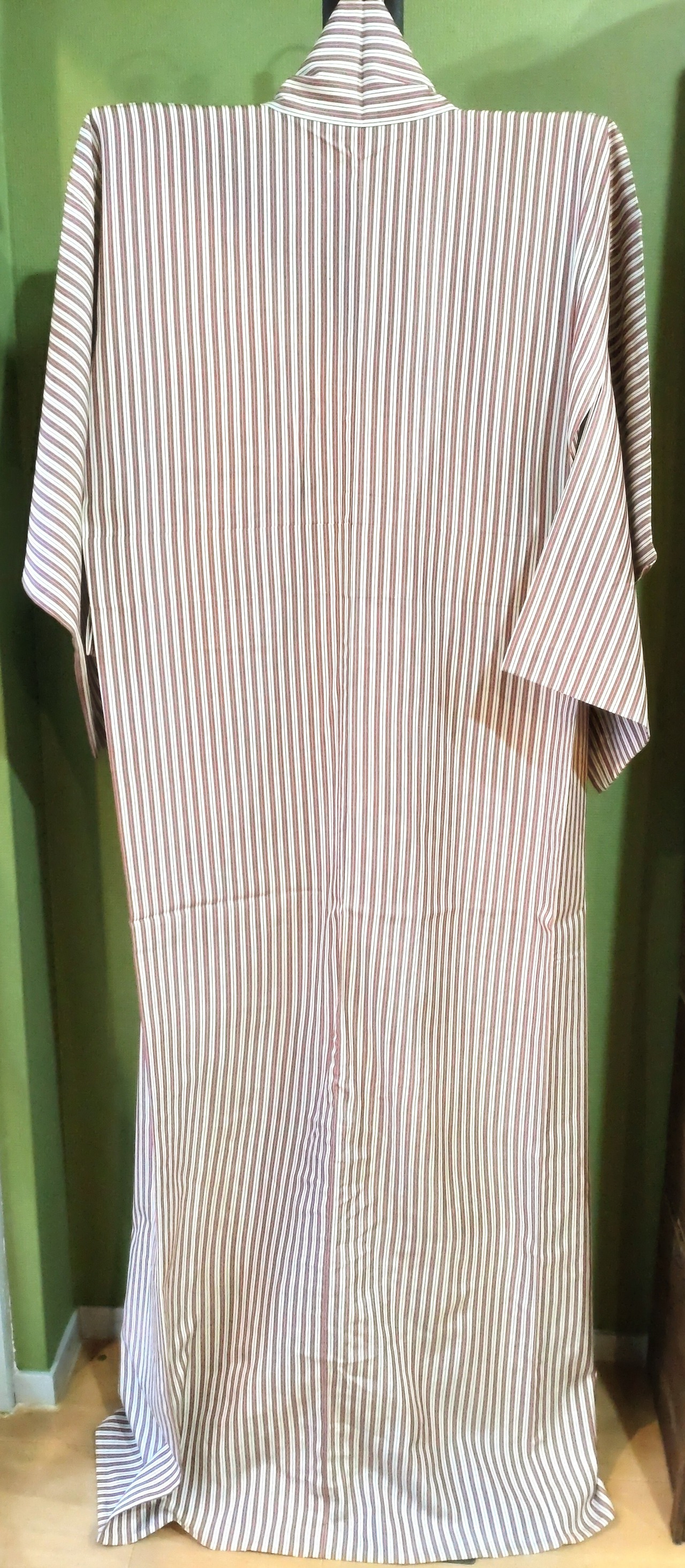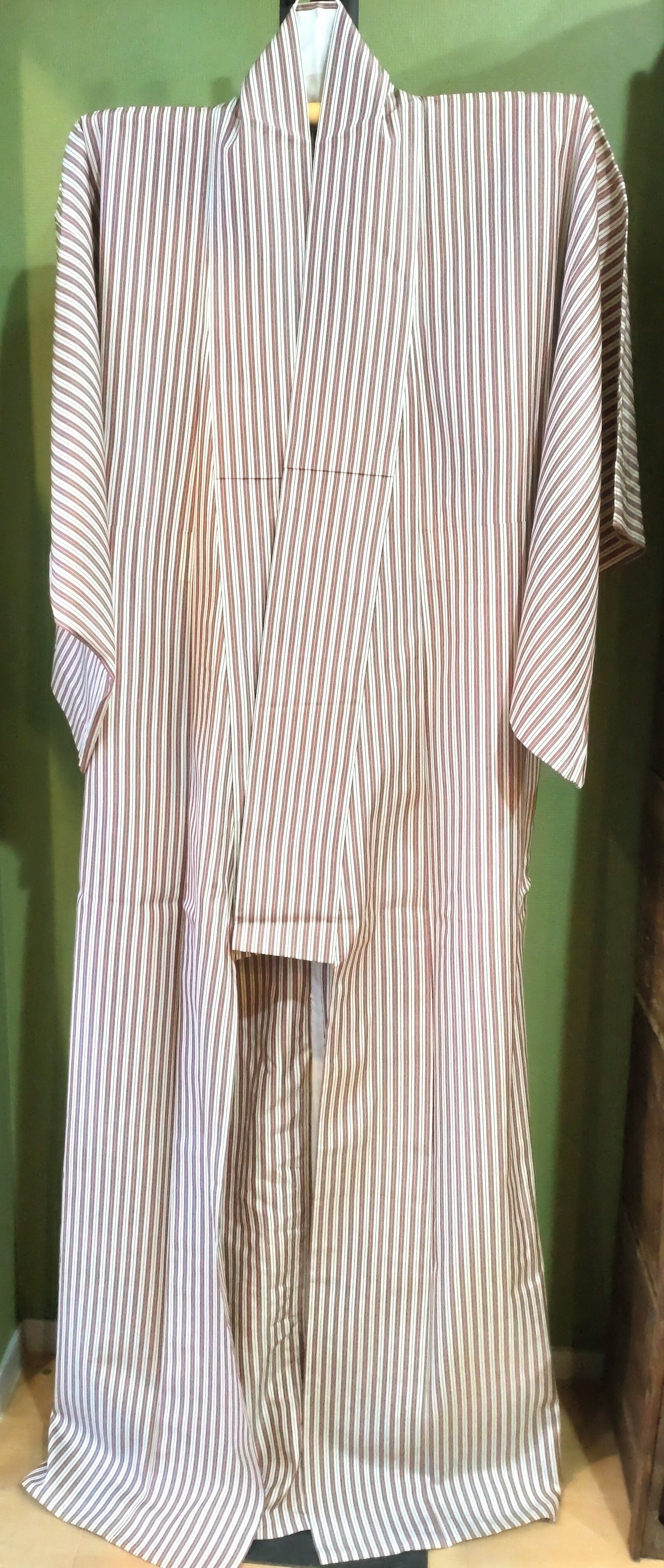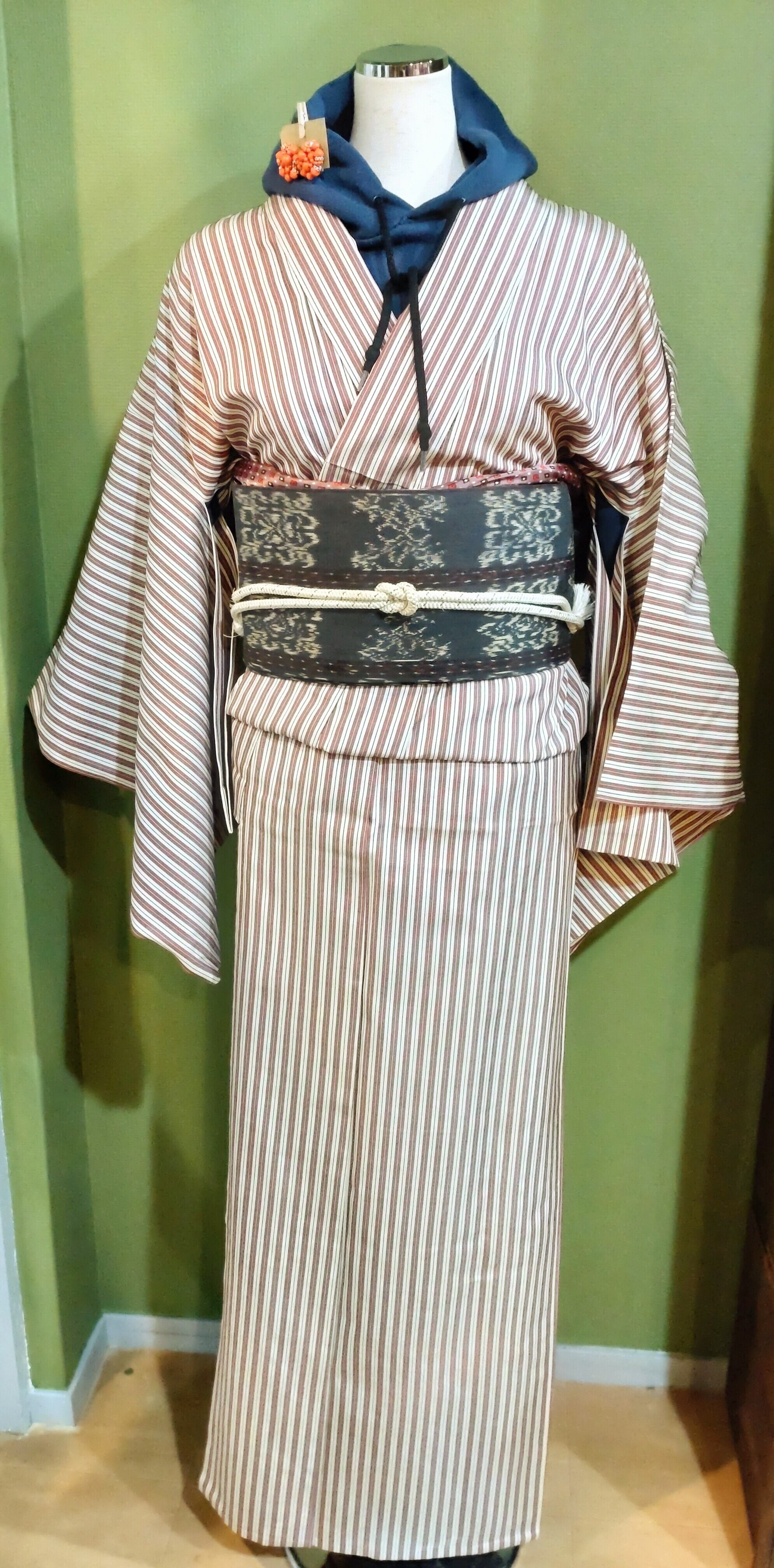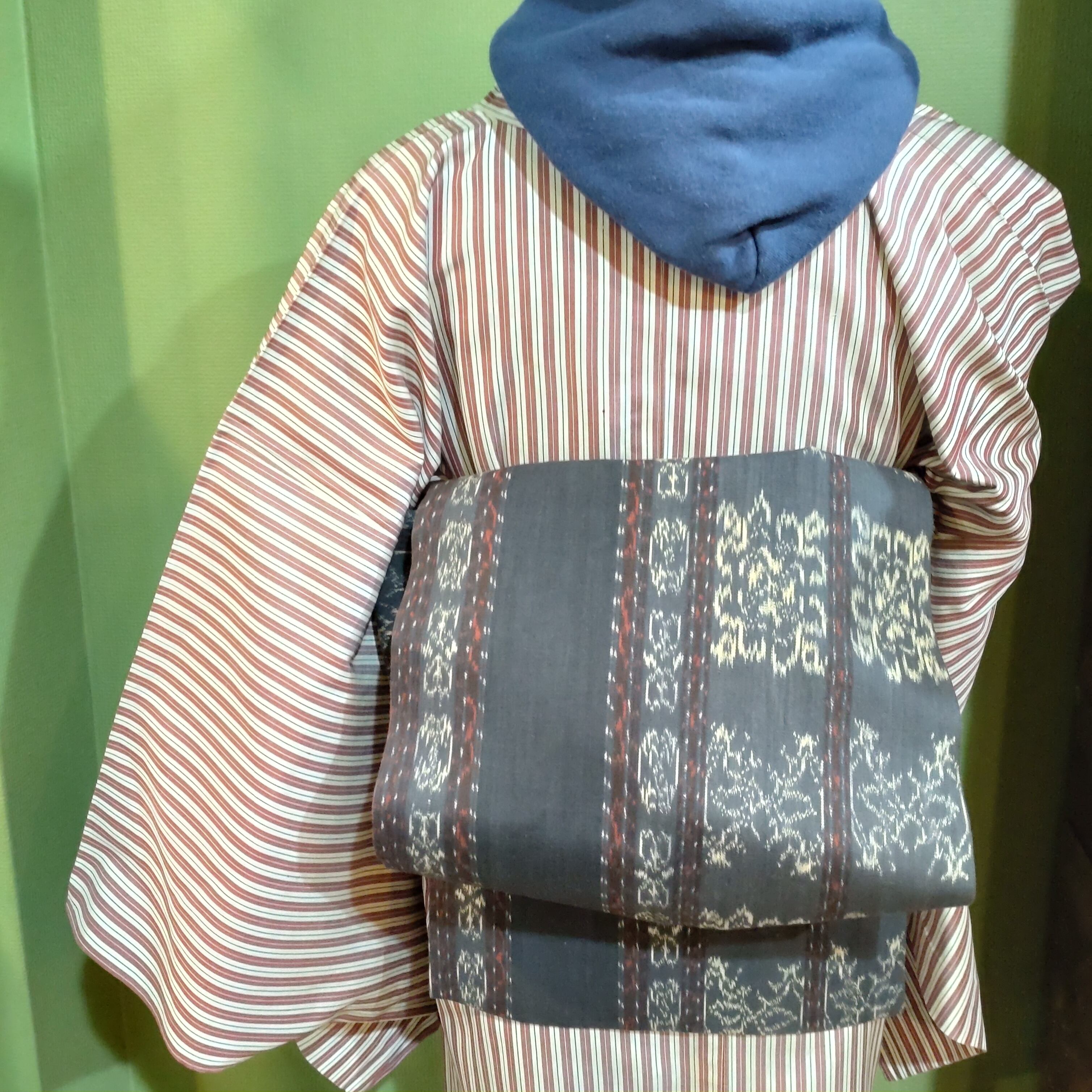 シャリ感のある紬で着付けしやすく、なんと言っても合わせやすいくすみカラーのストライプ。