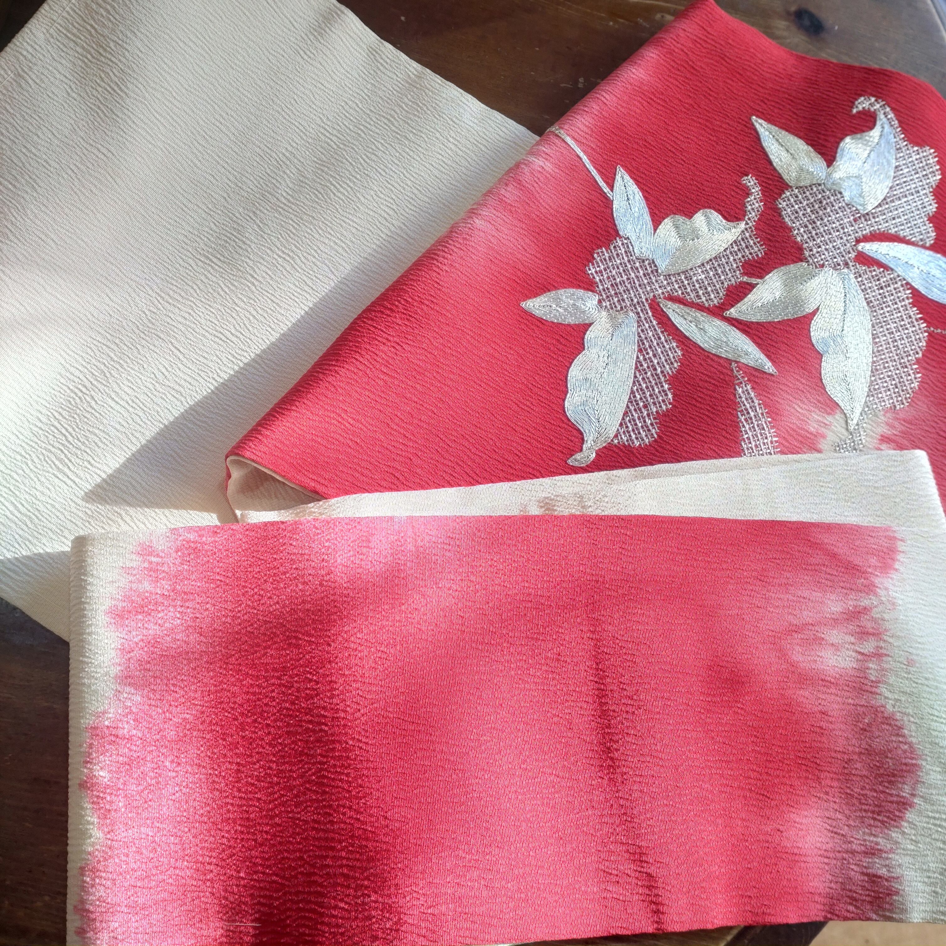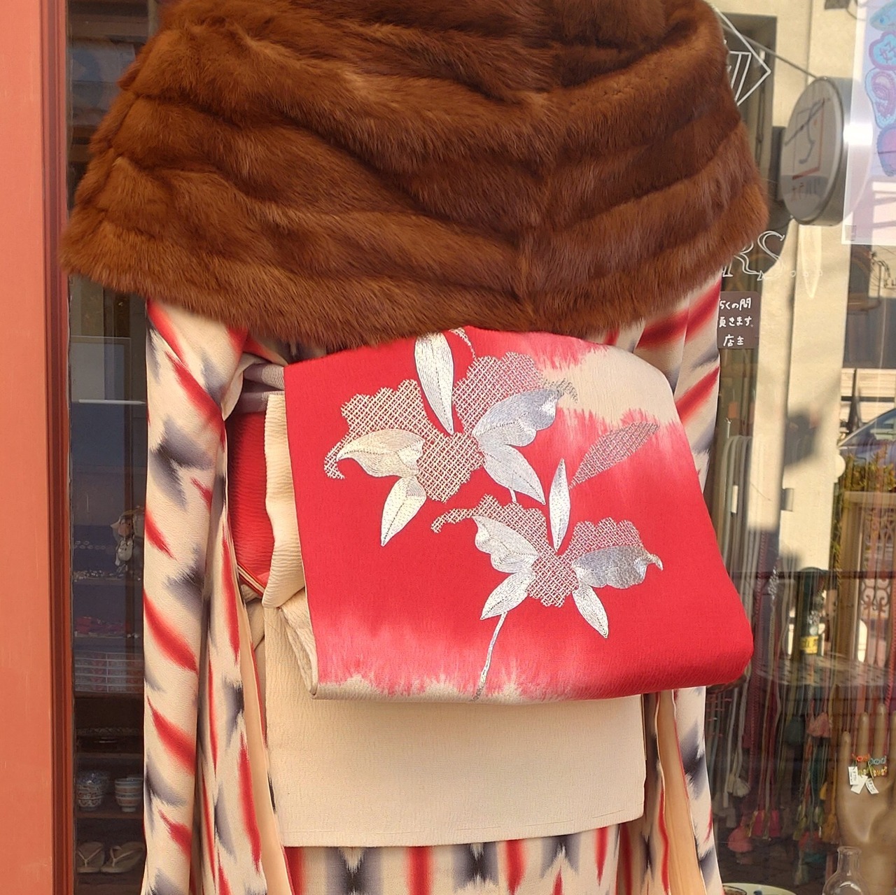 お太鼓の部分の銀糸刺繍が繊細かつ大胆。