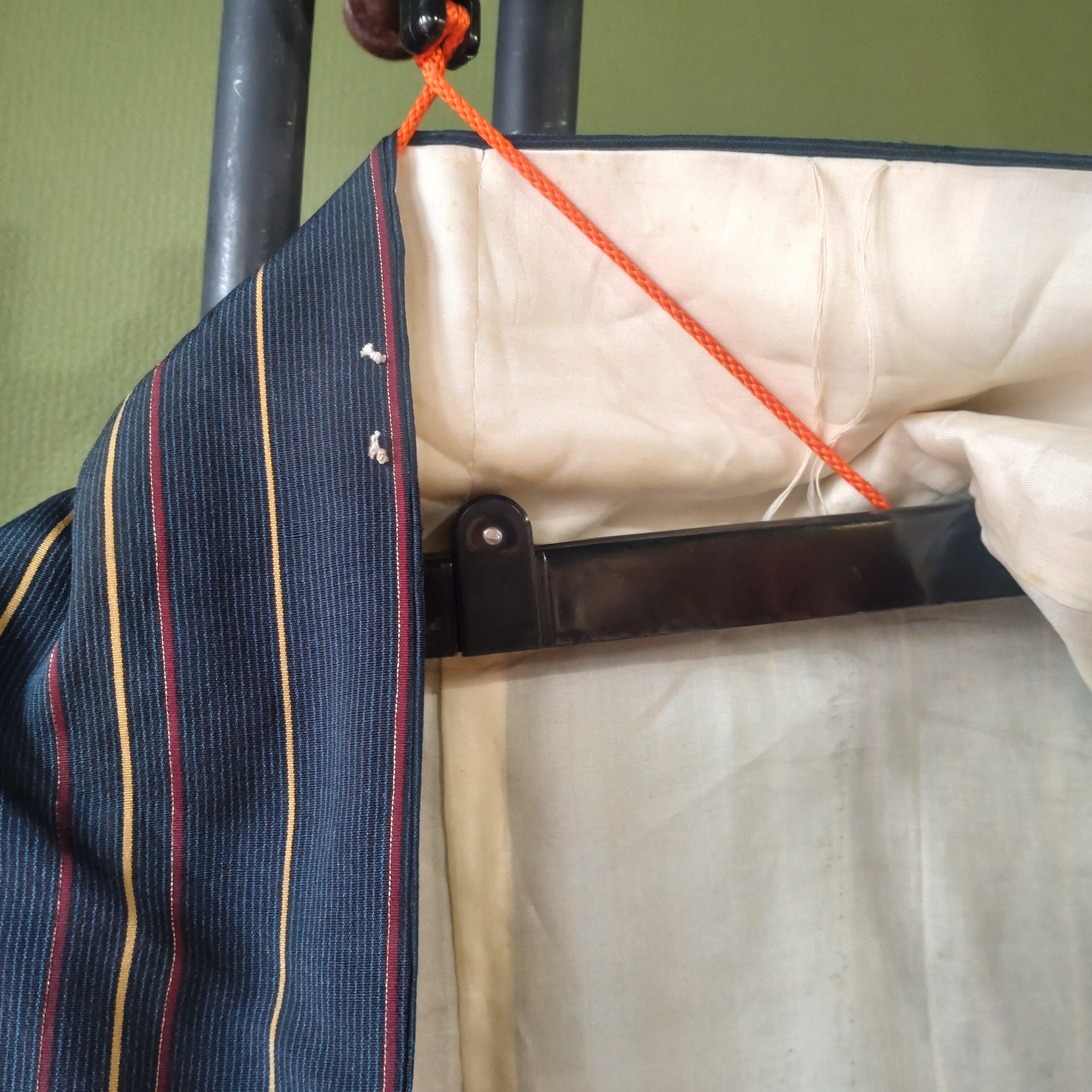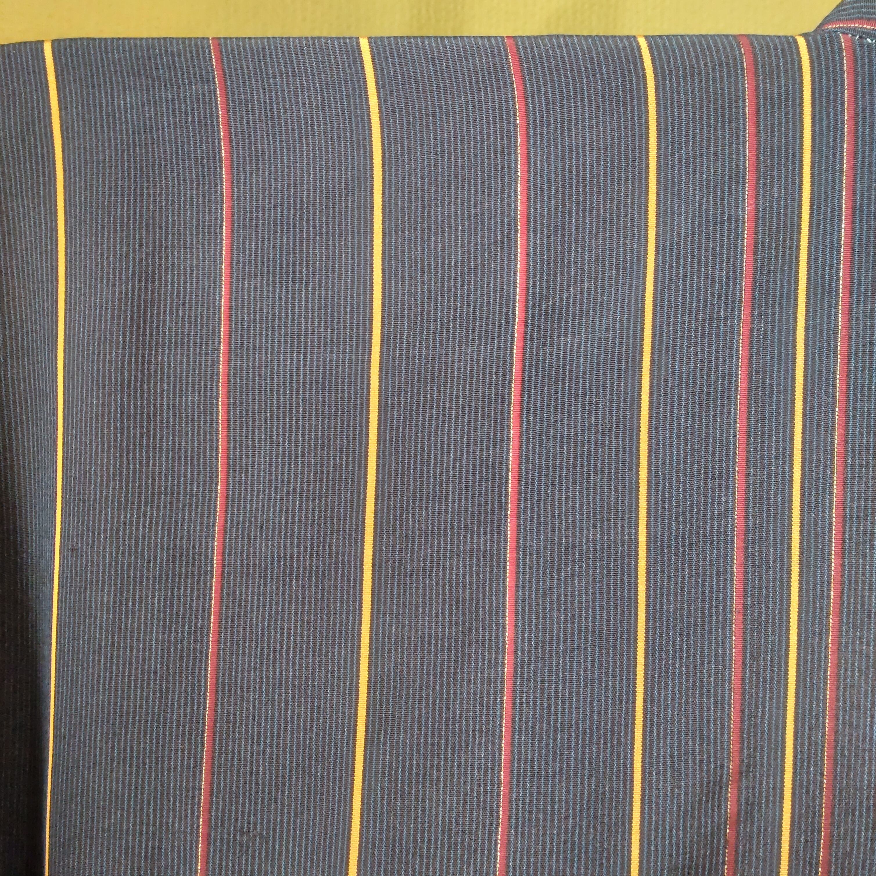 黒字に青の細いストライプに、芥子色とえんじ色の何となくゆらゆらして見えるストライプの組み合わせ。シャキッとし過ぎず、何となく色気があります。