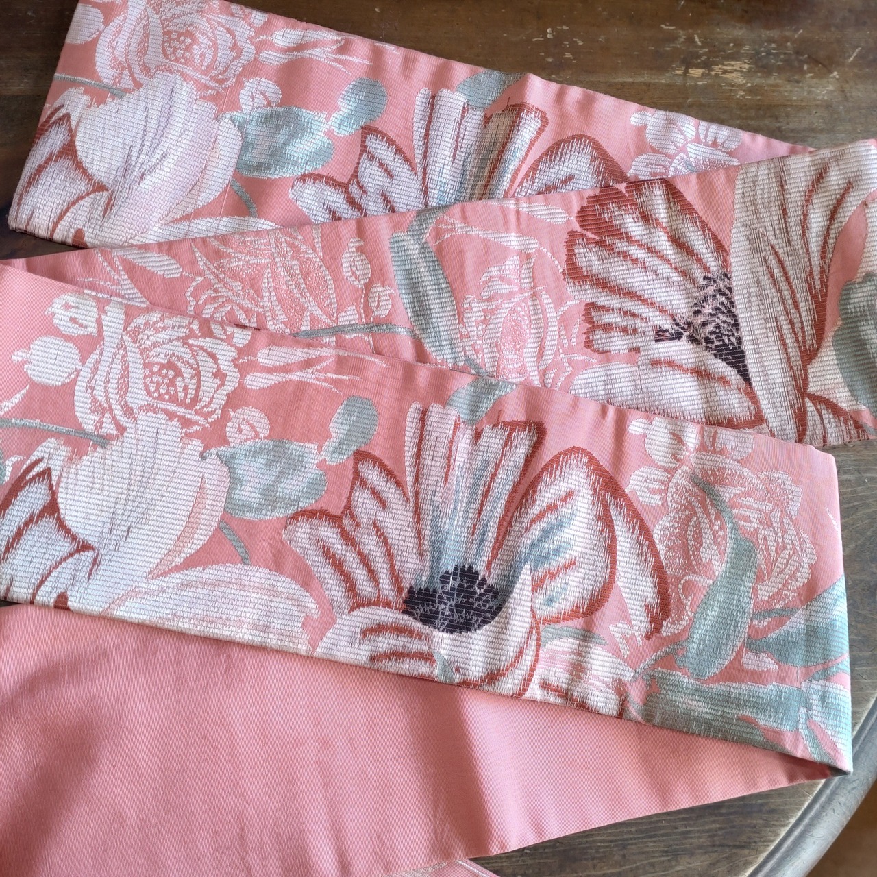 アンティークの割に長いので、結び方で無地の部分をだしたりして遊べます。