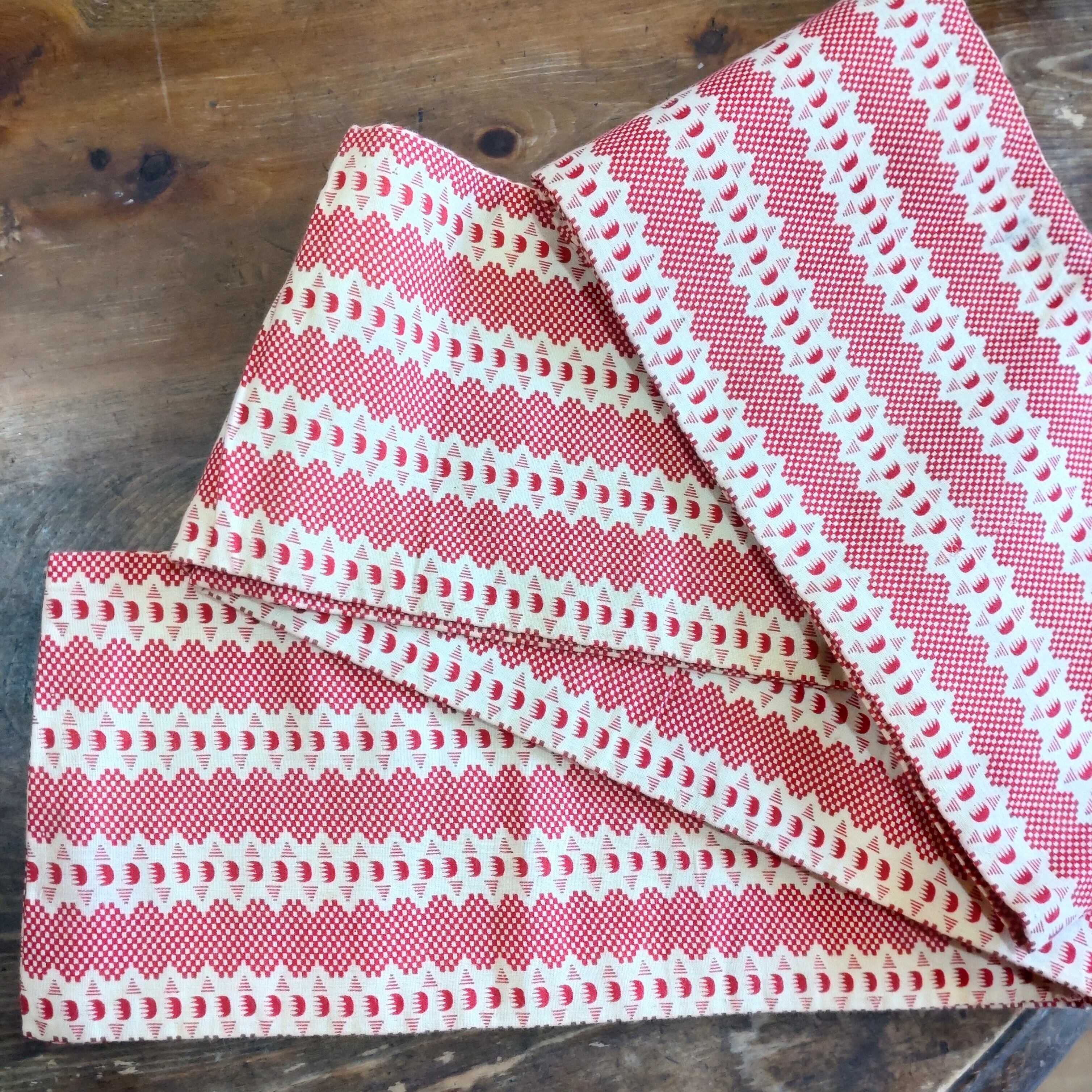 赤に生成のハシゴレースのような柄がなんとも可愛らしいです。