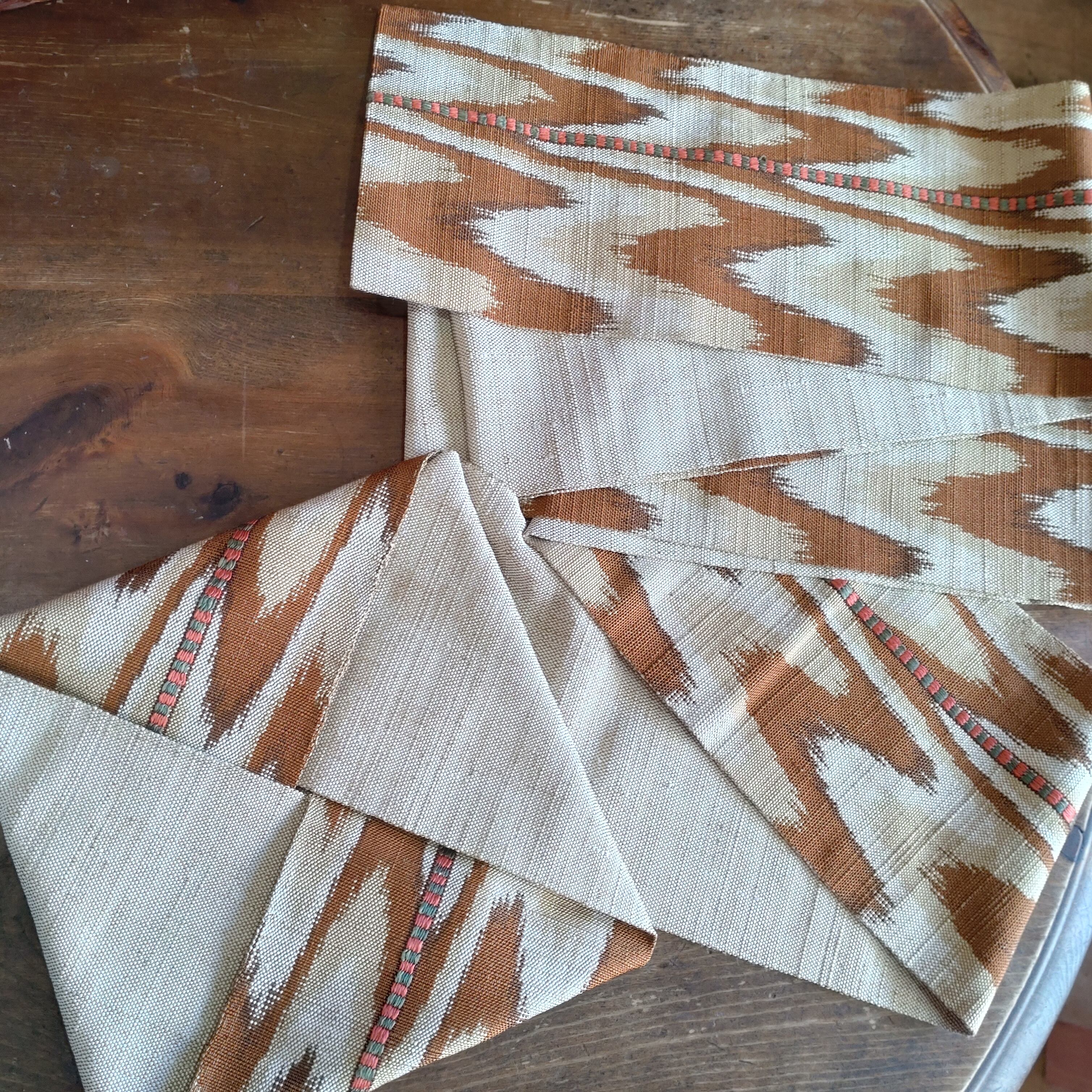 柄もモダンで現代物の浴衣にも合いそう。帯締めしてるみたいなラインの柄もポイントになりますね。
