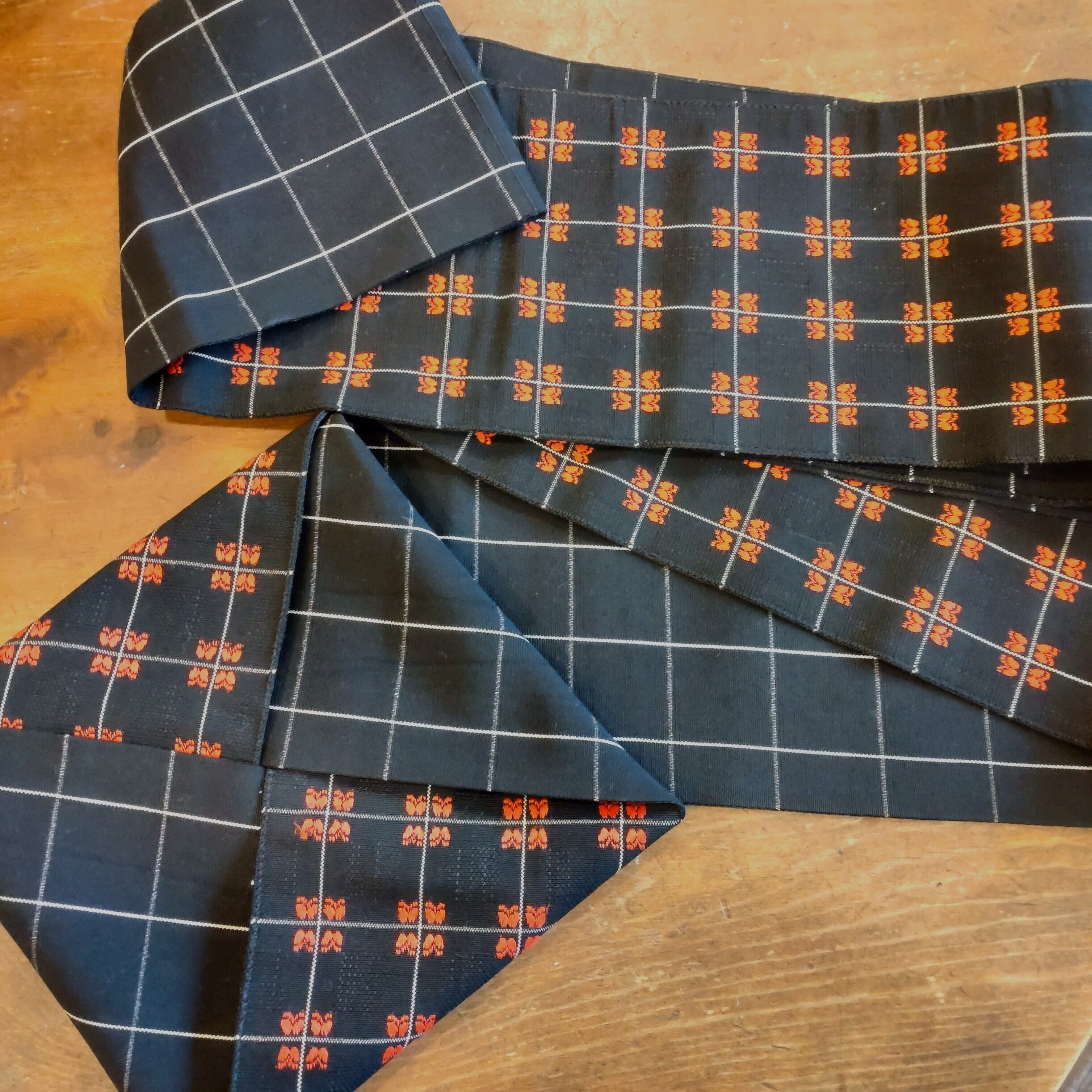 使いやすい黒ベースの半幅帯です。