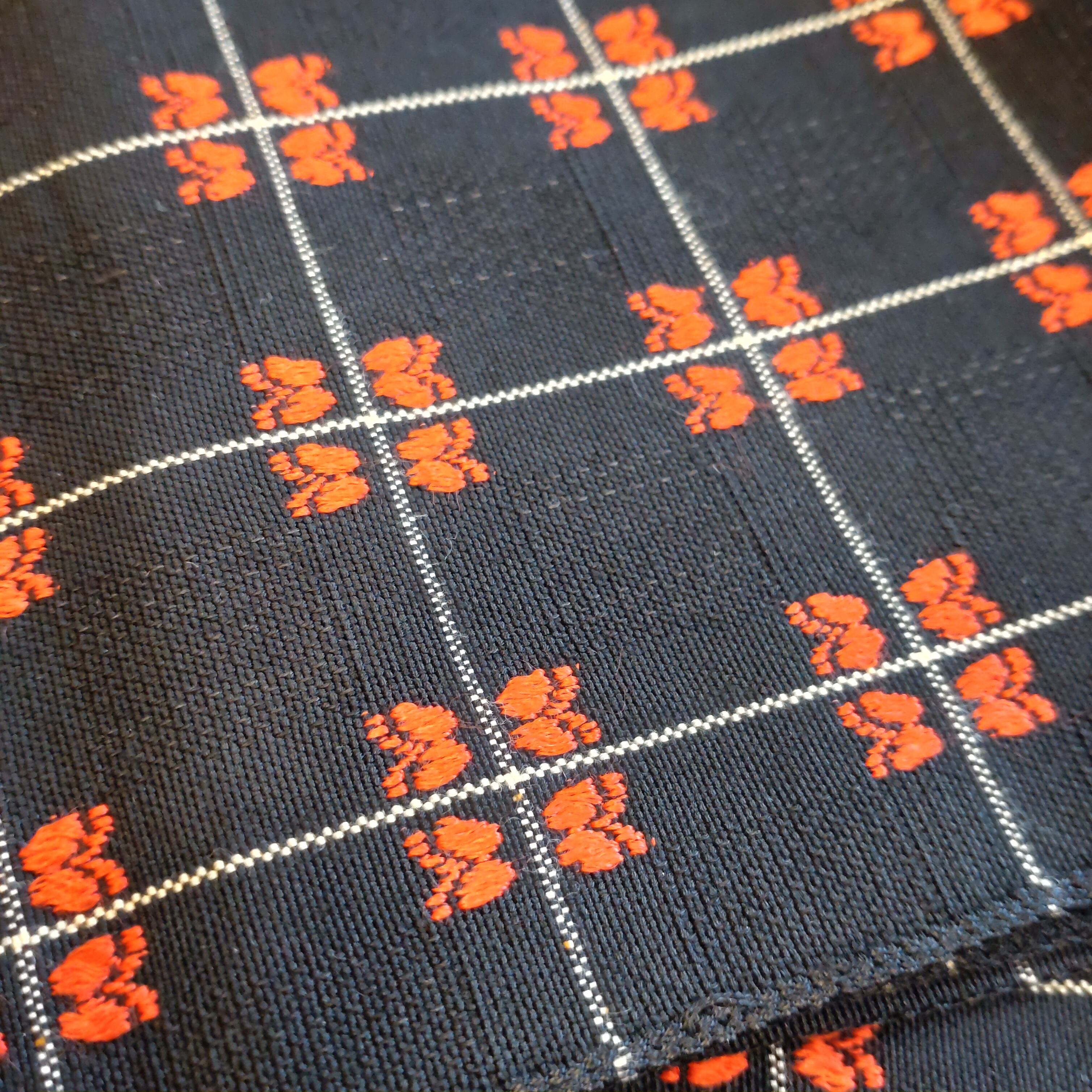 裏側は赤い蝶の模様が無いシンプルなペンチェックで、これまた使いやすい。どちらも見せる結び方もオススメです。赤の色は着用写真が肉眼で見た時に近いので、ご参考下さい。