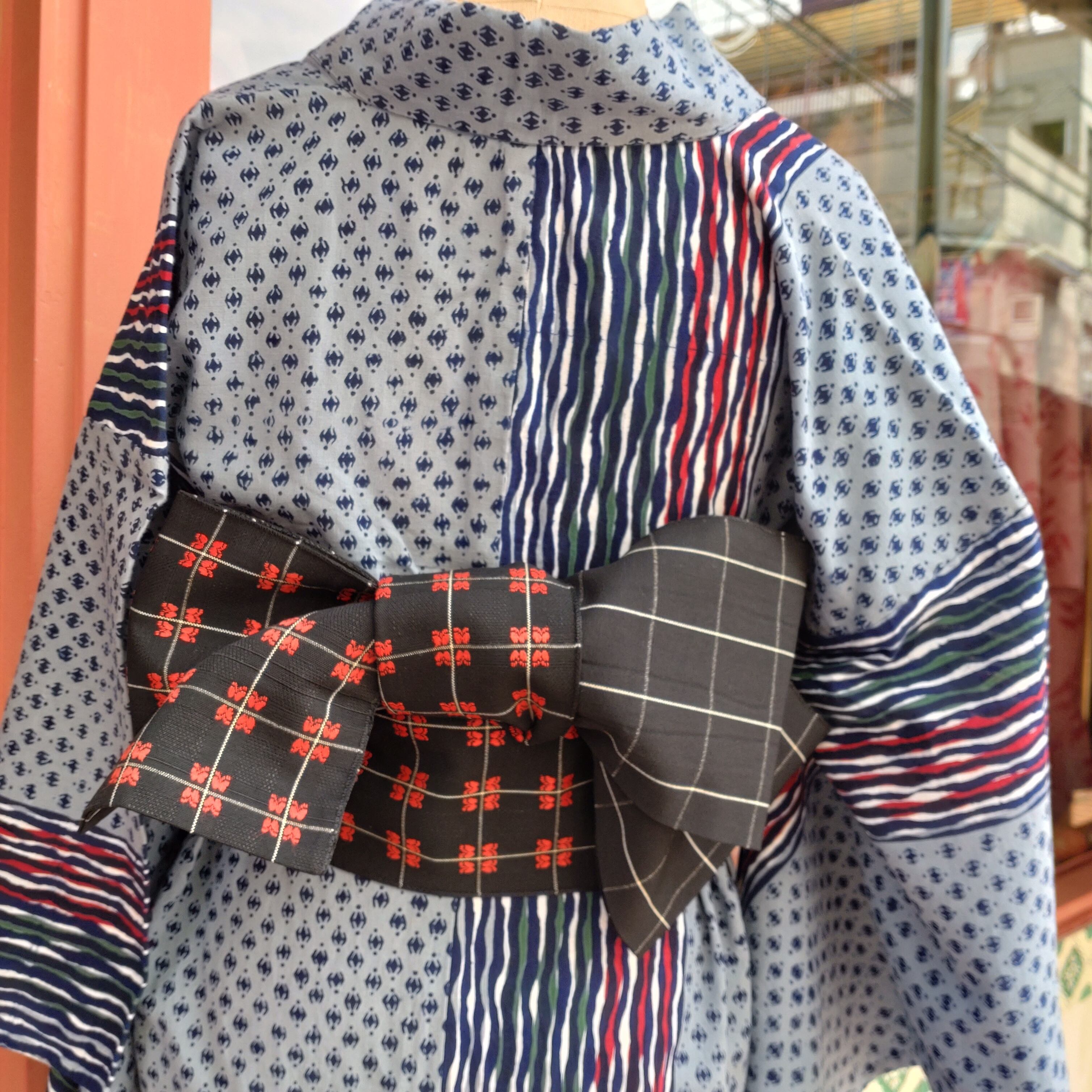 windowpane × butterfly harf width obi