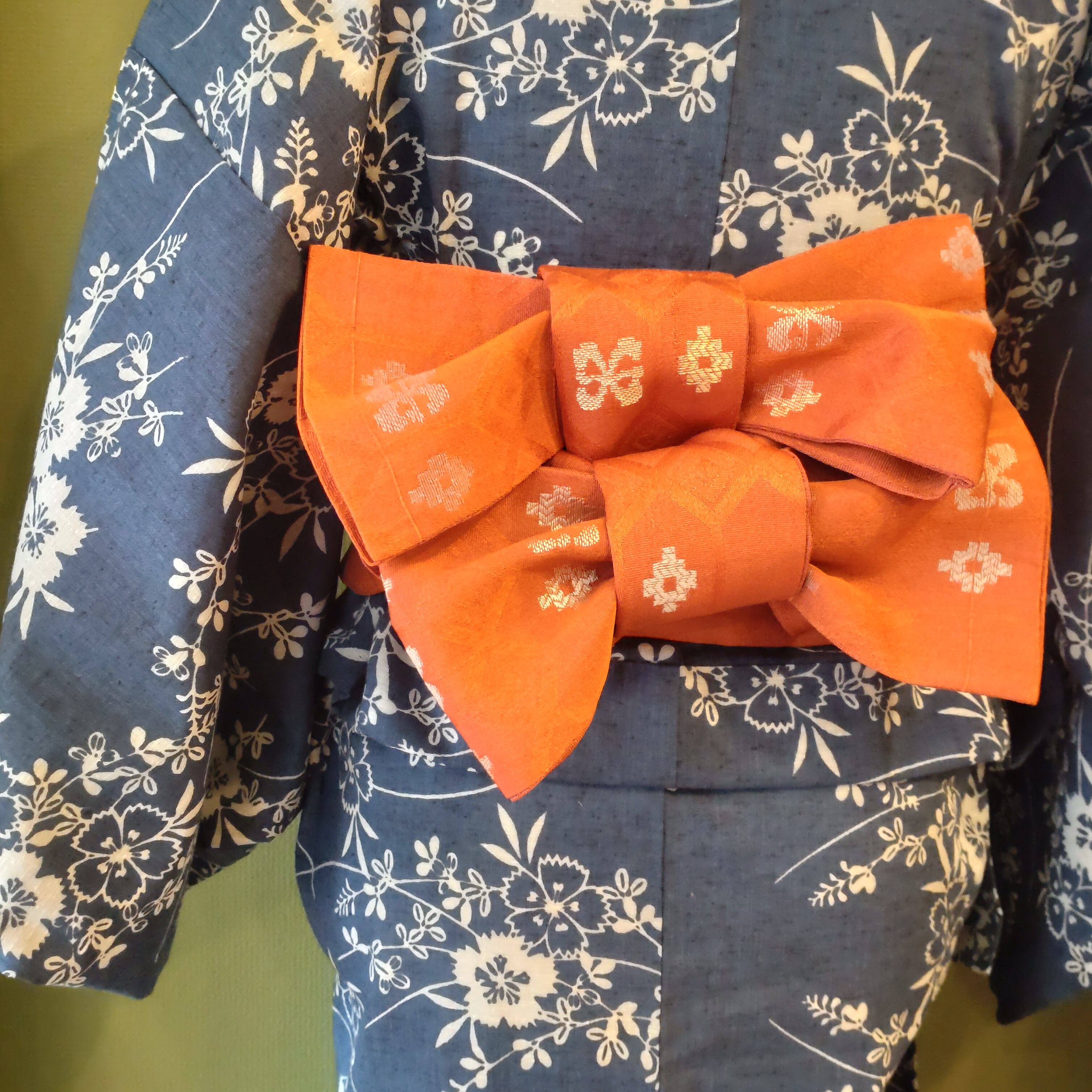 オレンジ色の半幅帯です。
