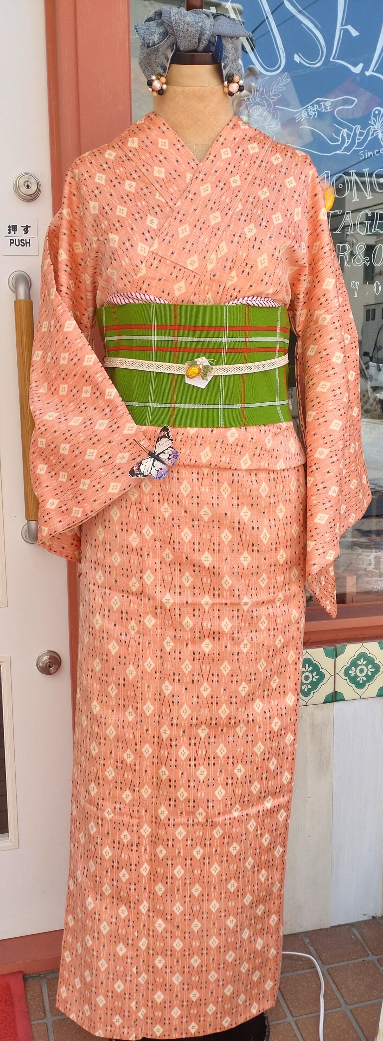 綿紬のようでもあり涼しげな生地なので浴衣風に着るのもオススメです。