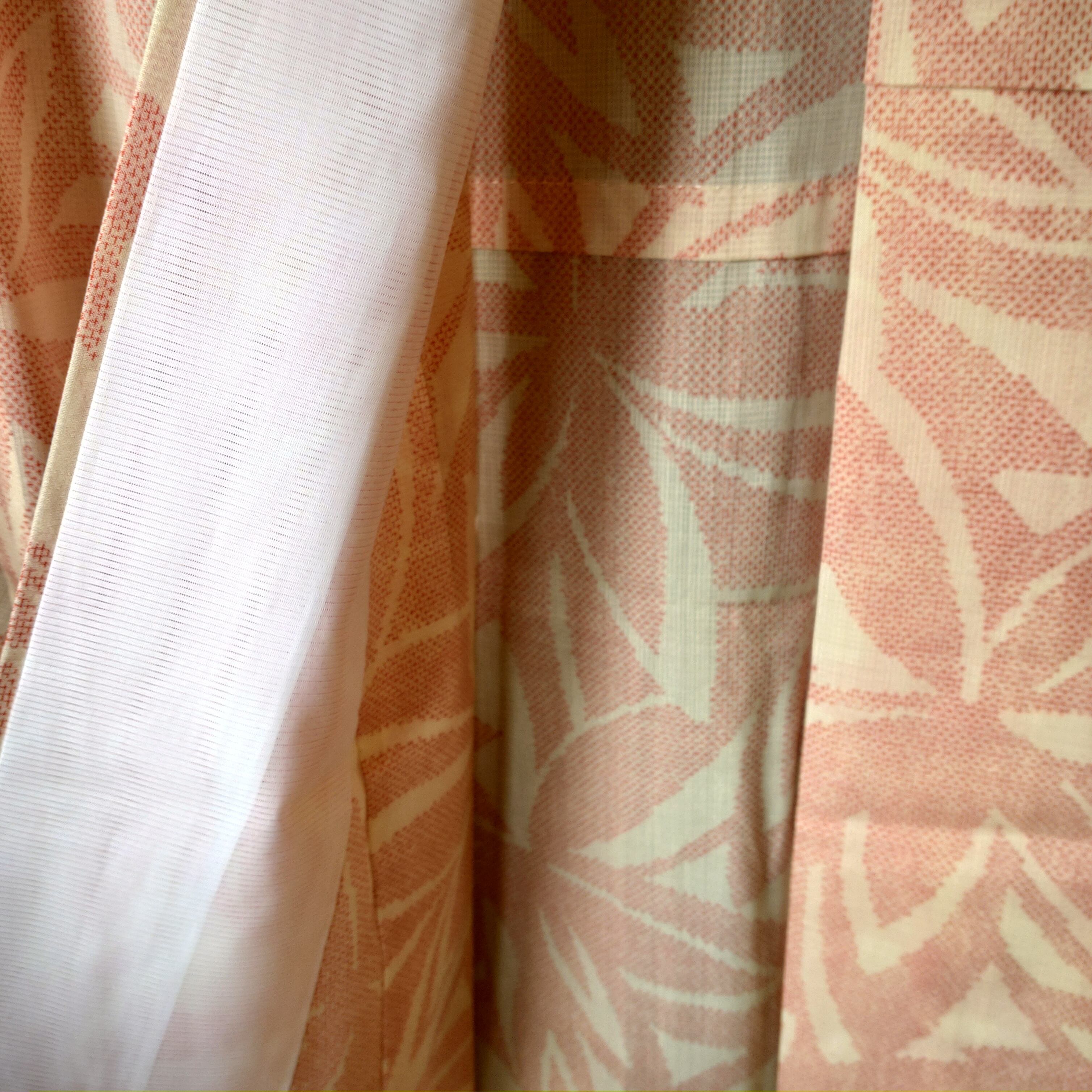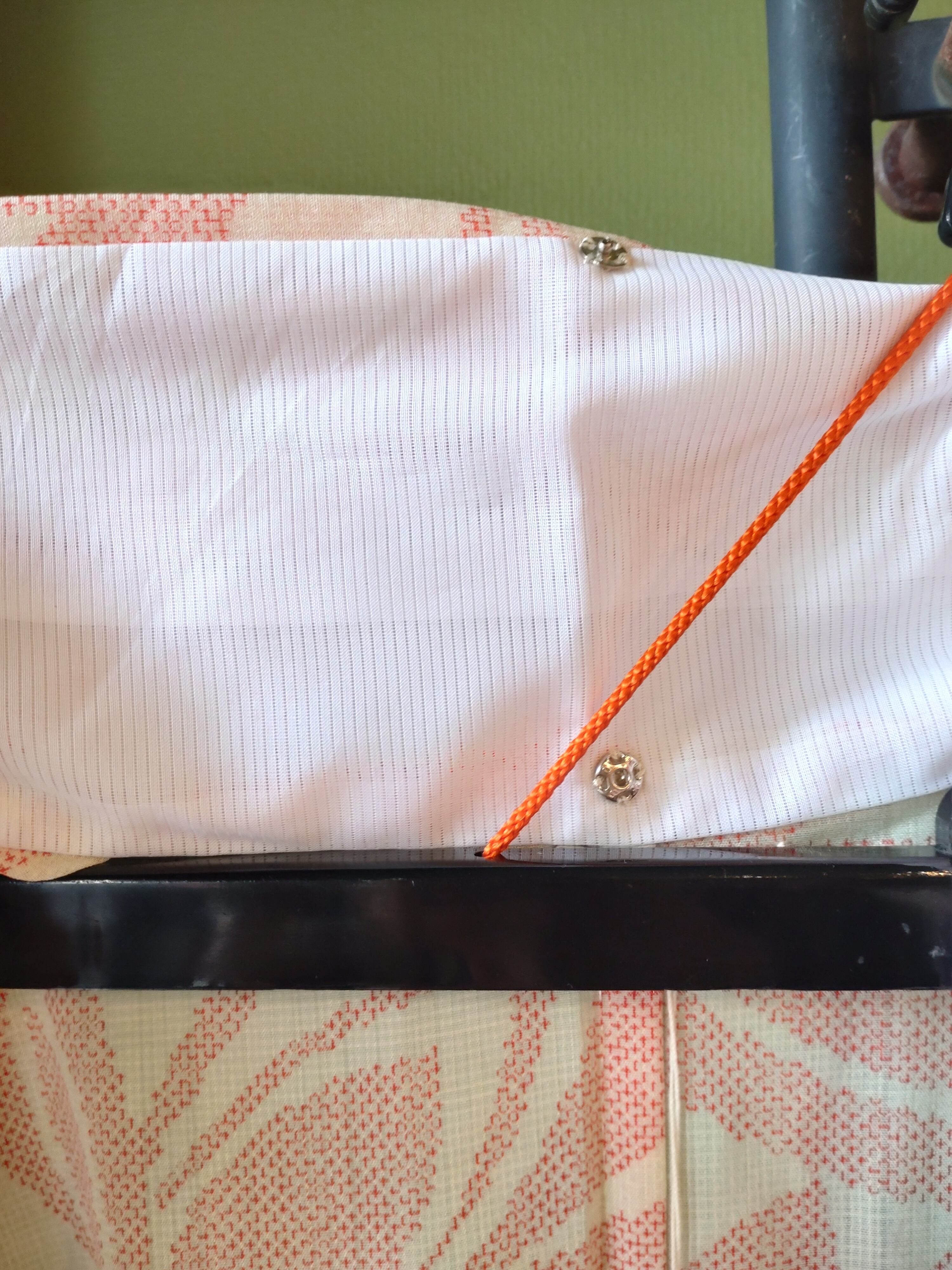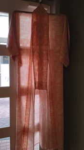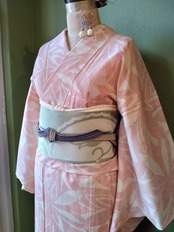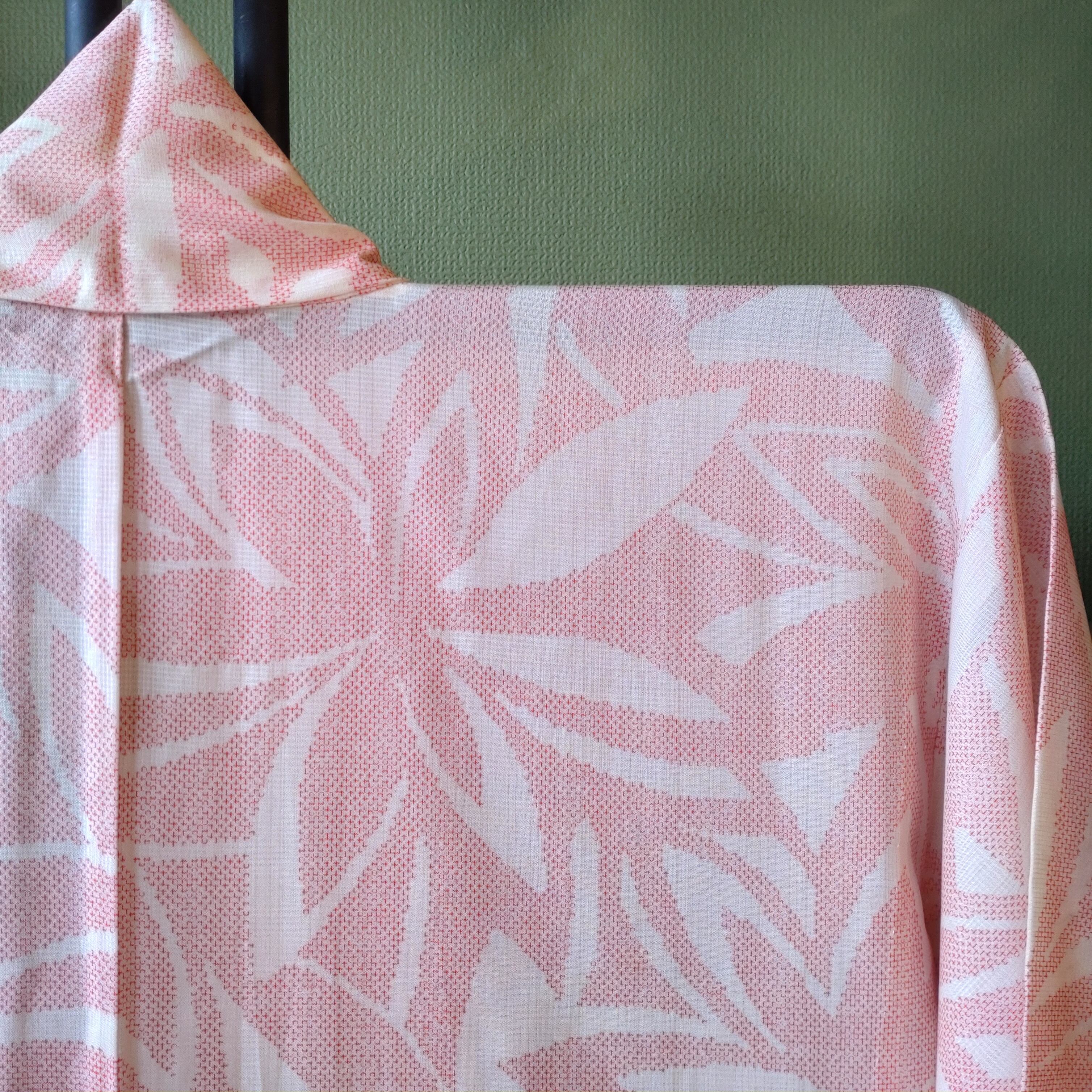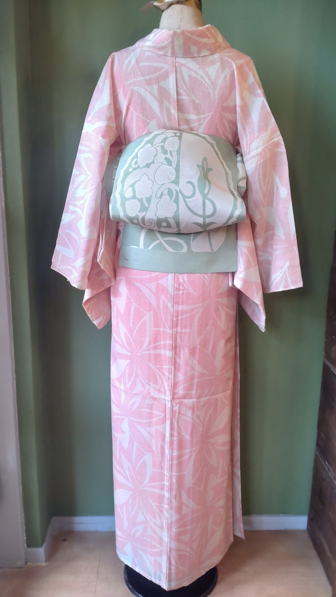 化繊で古いものではありませんが、とても丁寧に手縫いで仕立てられています。パステル調のコーディネートも濃い色の帯で締めるコーディネートも良し、洗えて良し。身丈もいいサイズです。