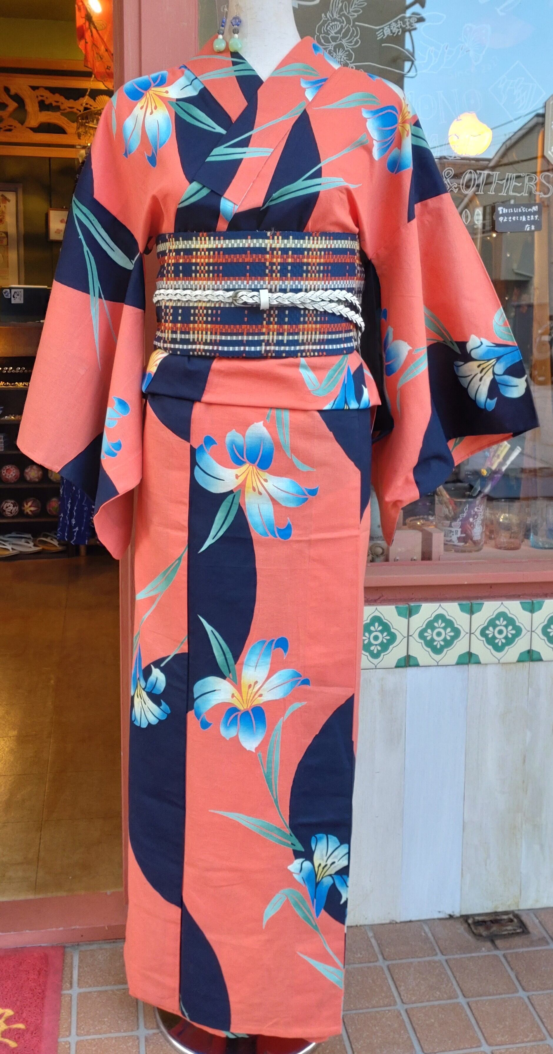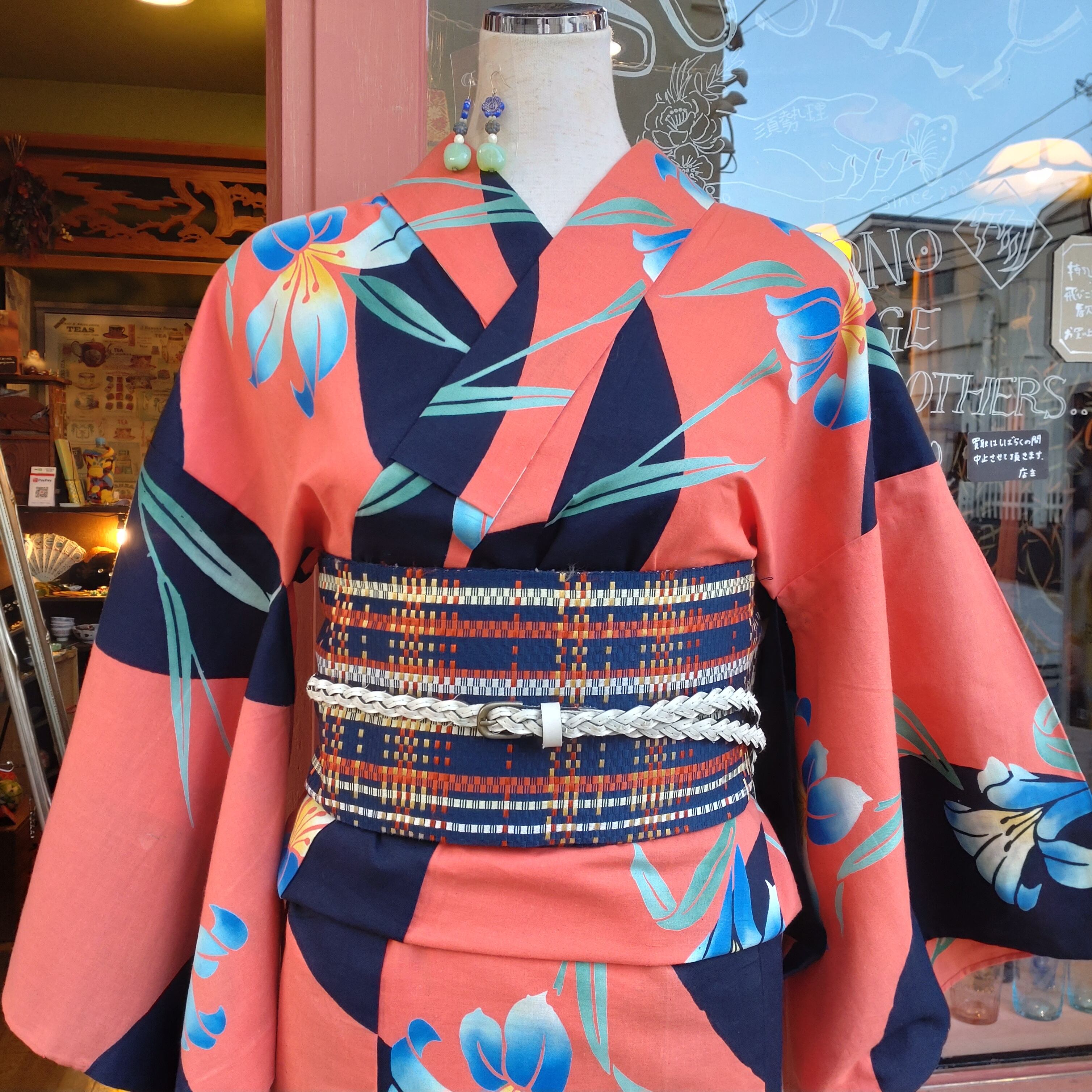 Orange & Black big pattern yukata