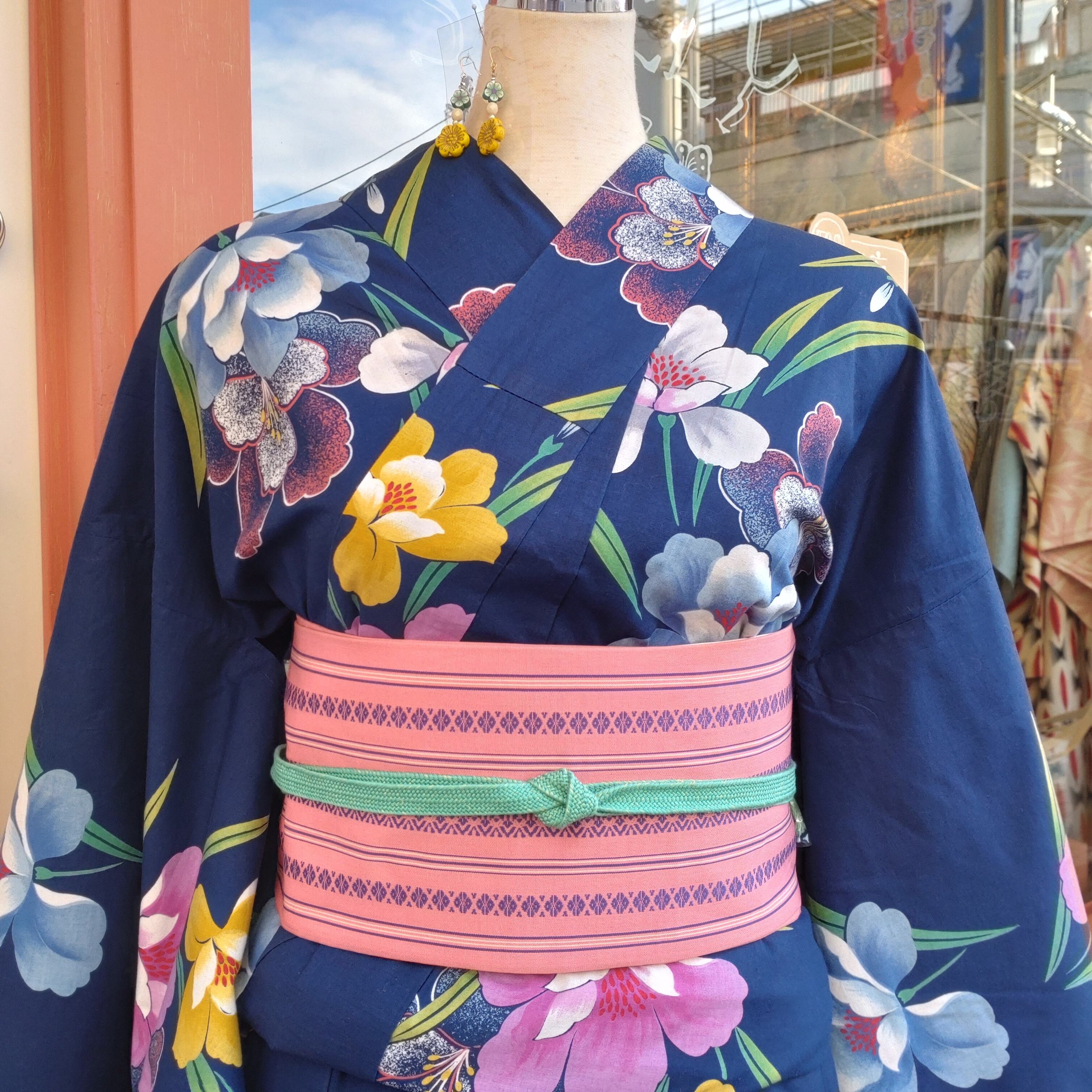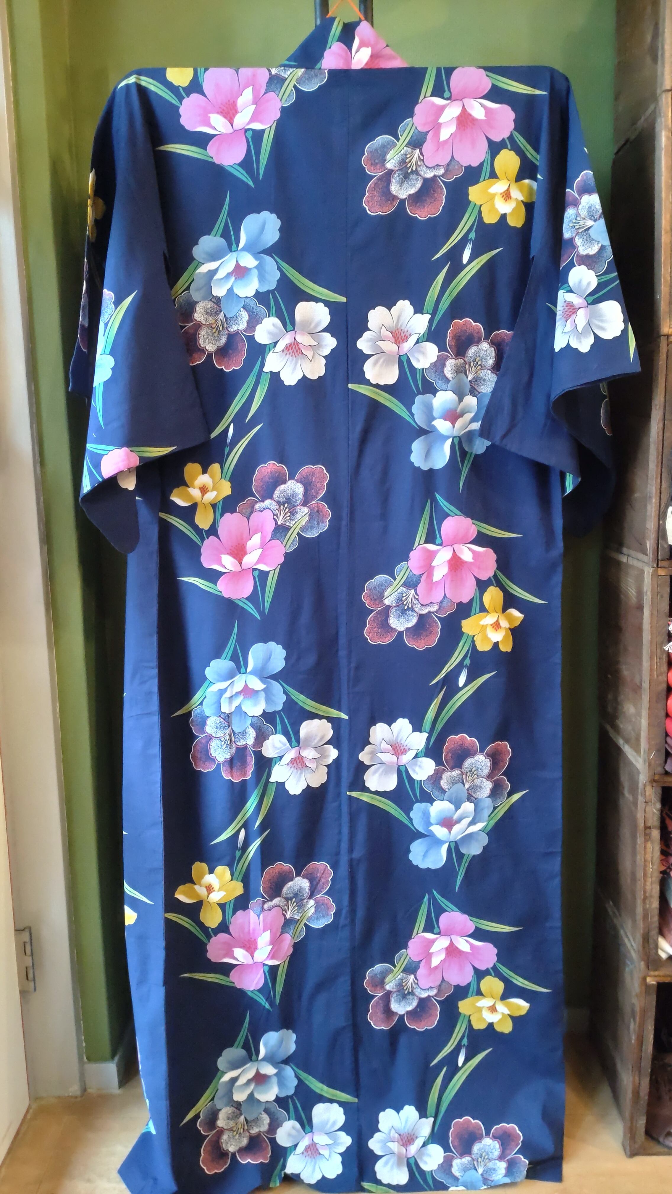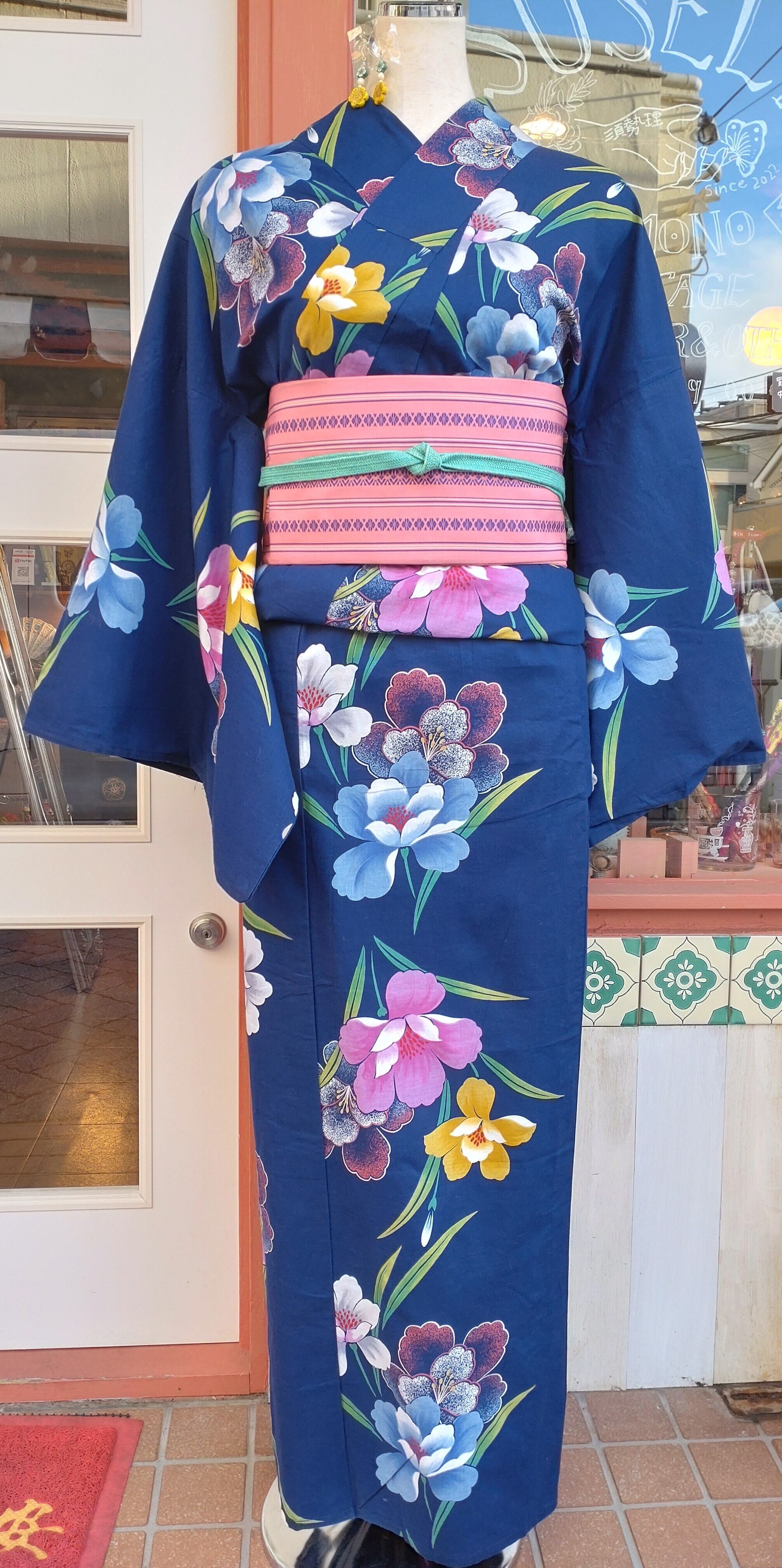 ミシン縫いで現代ものの浴衣ですが雰囲気のある華やかさです。