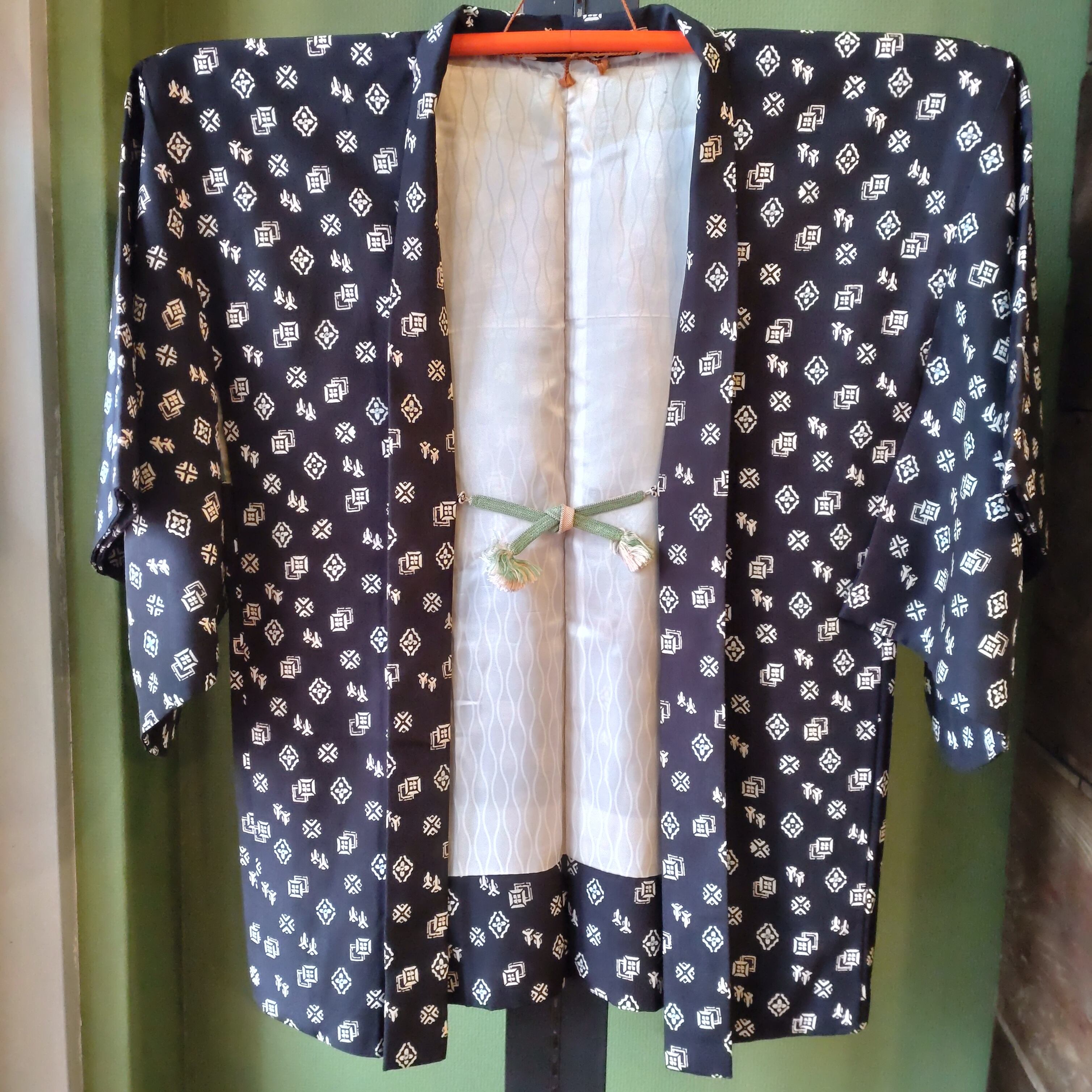 モノグラムのような模様の羽織です。
