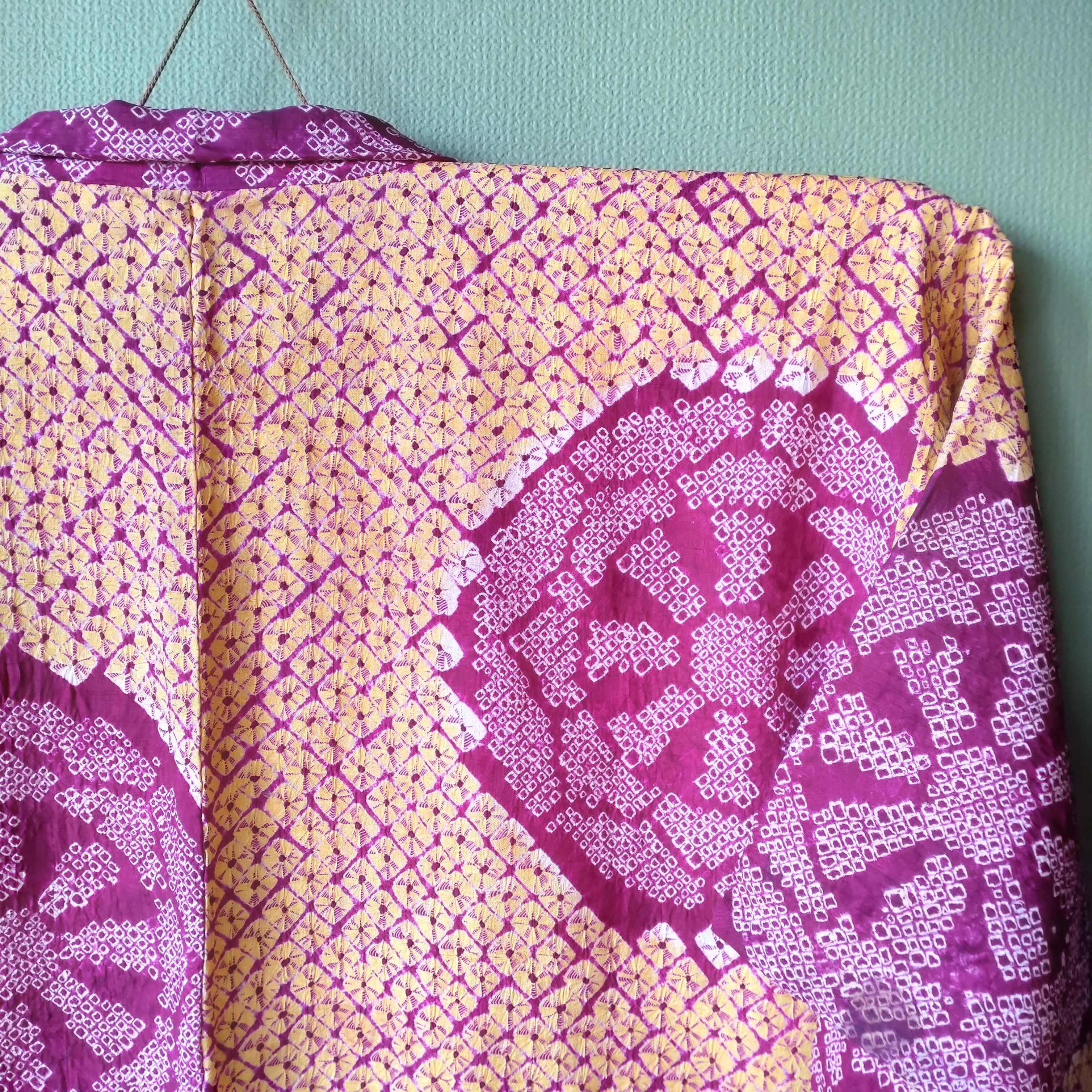 御所車柄のアンティーク絞り羽織です。
