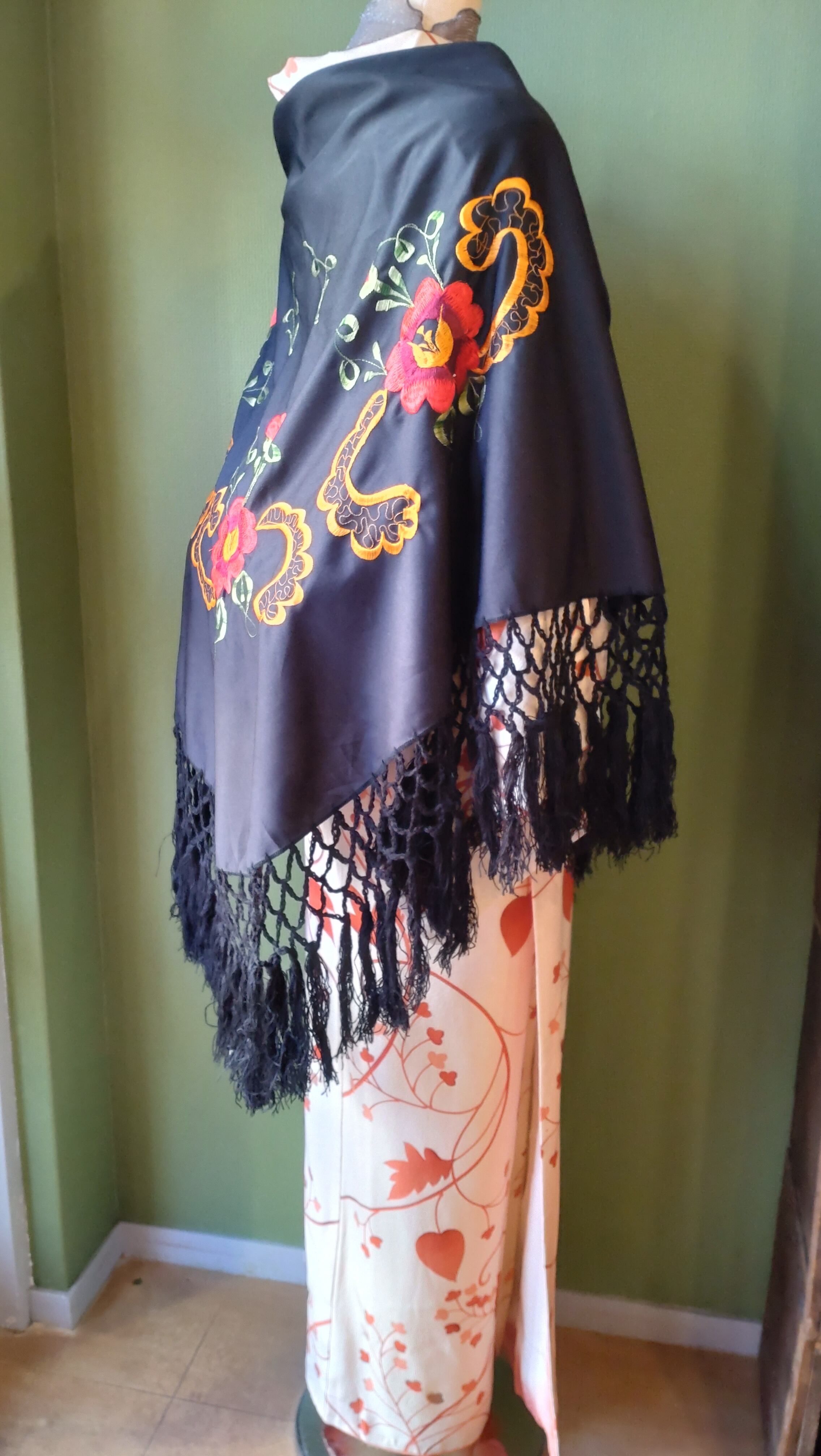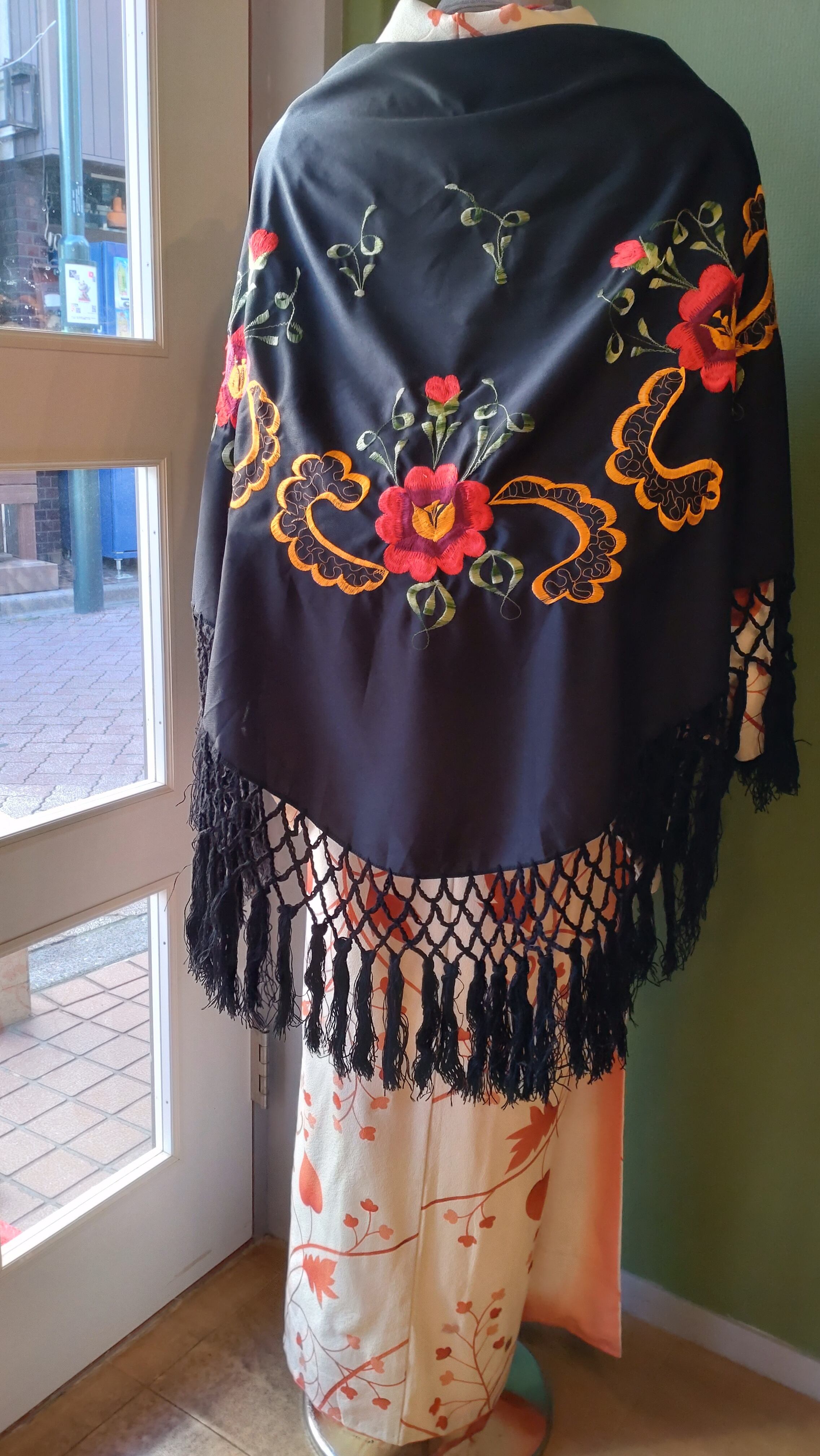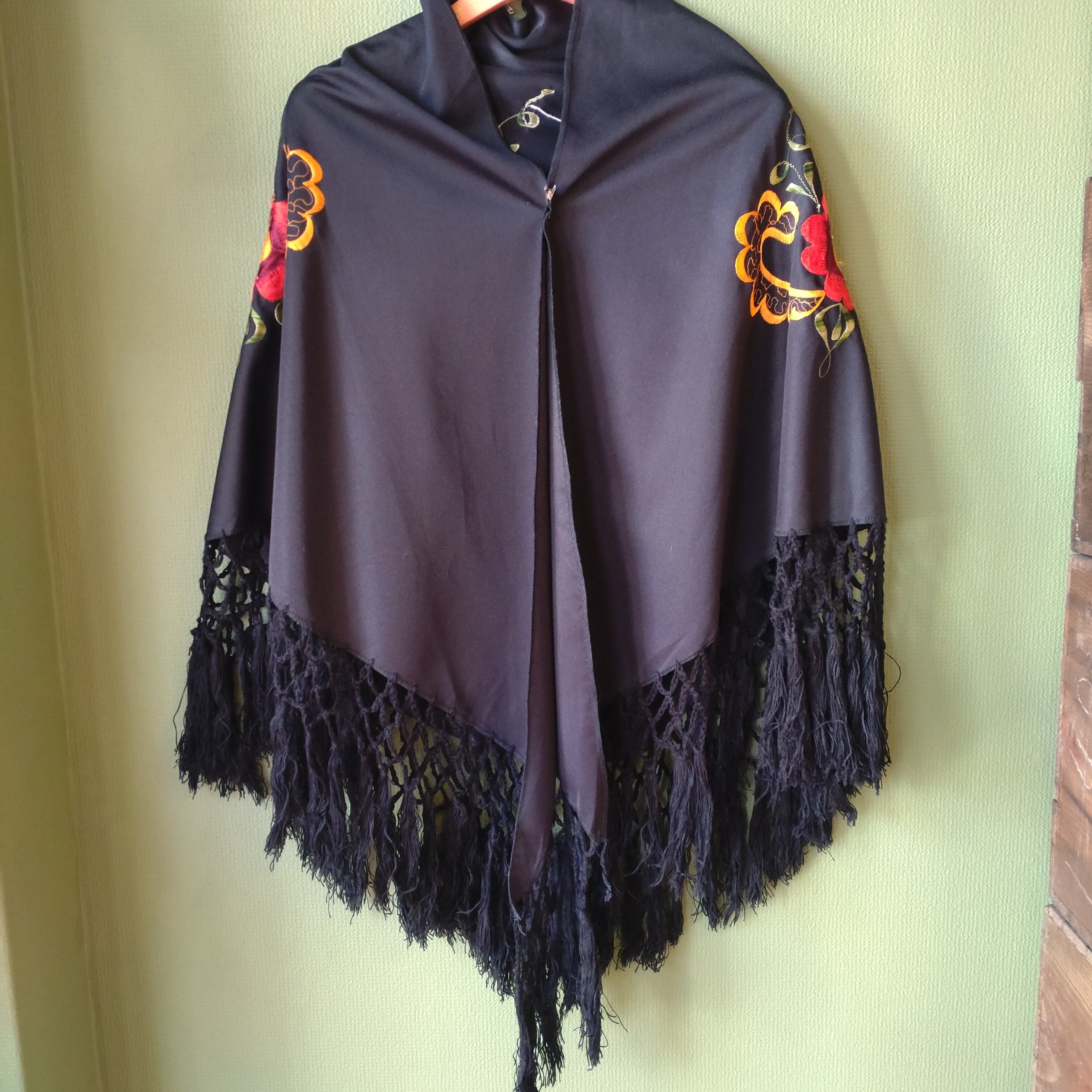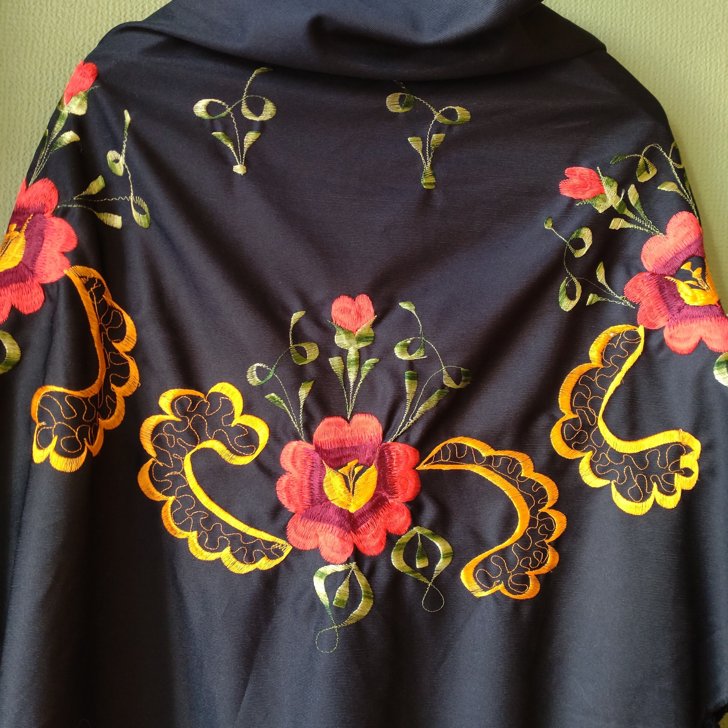 Embroidered red flowers cape