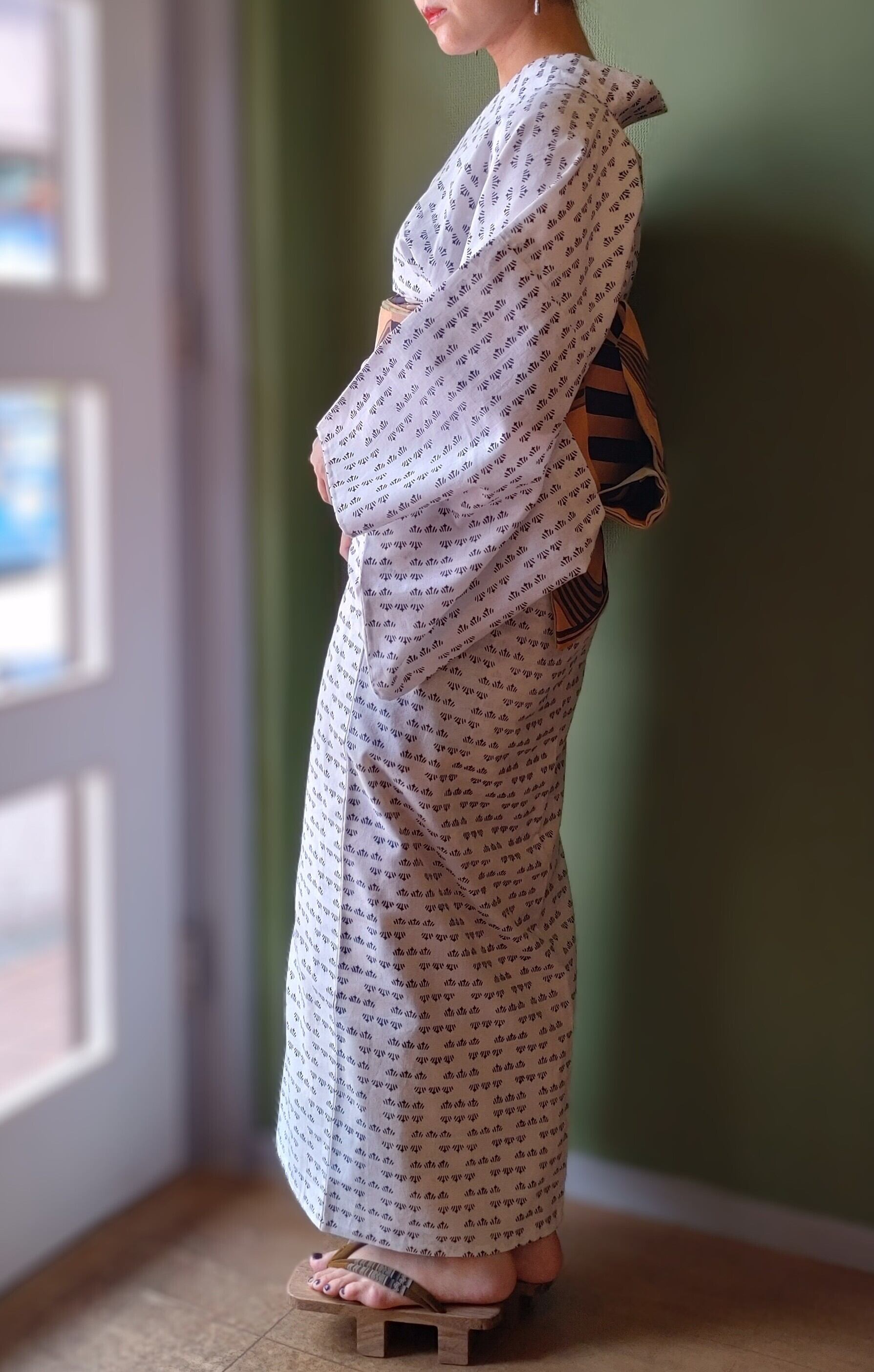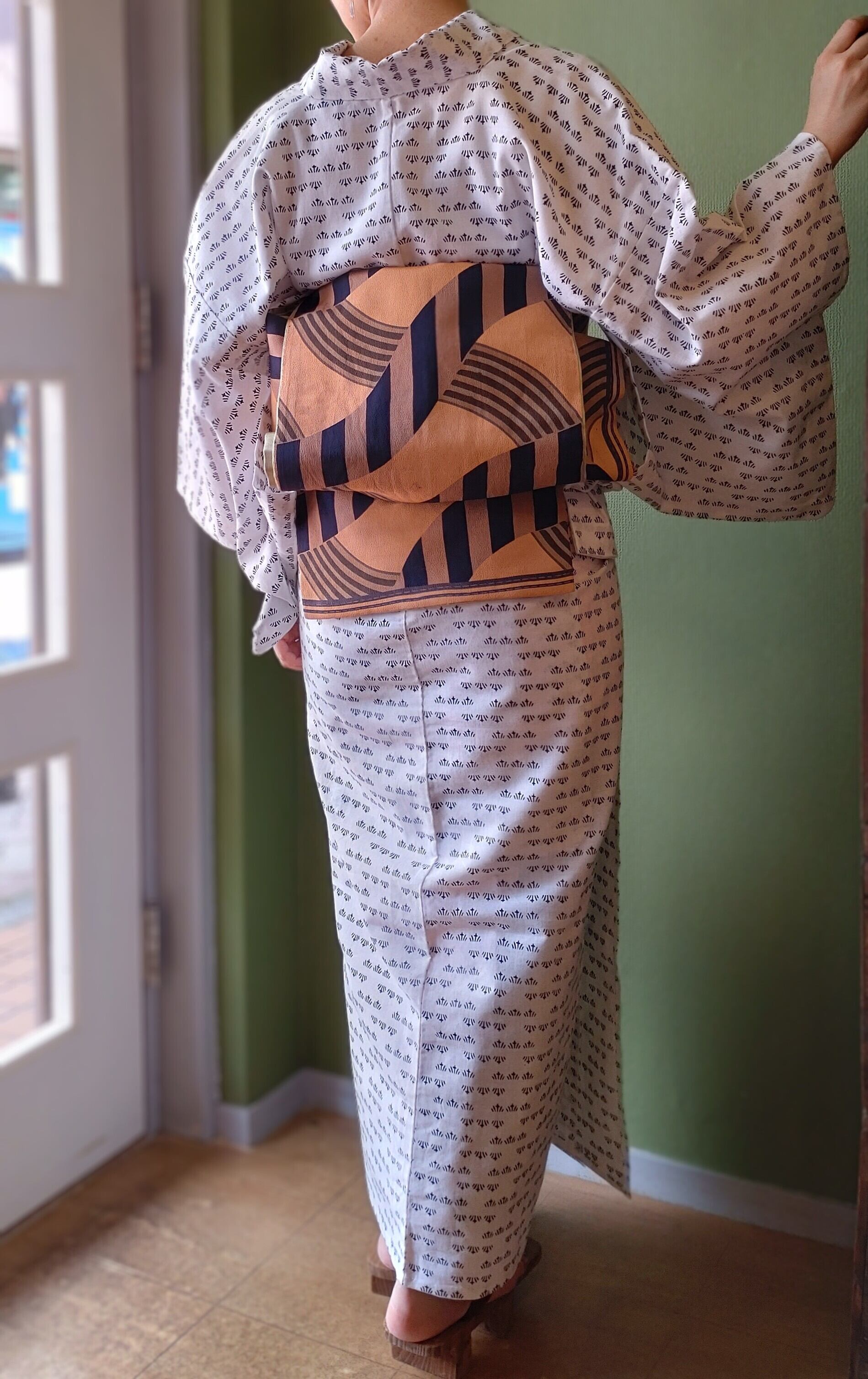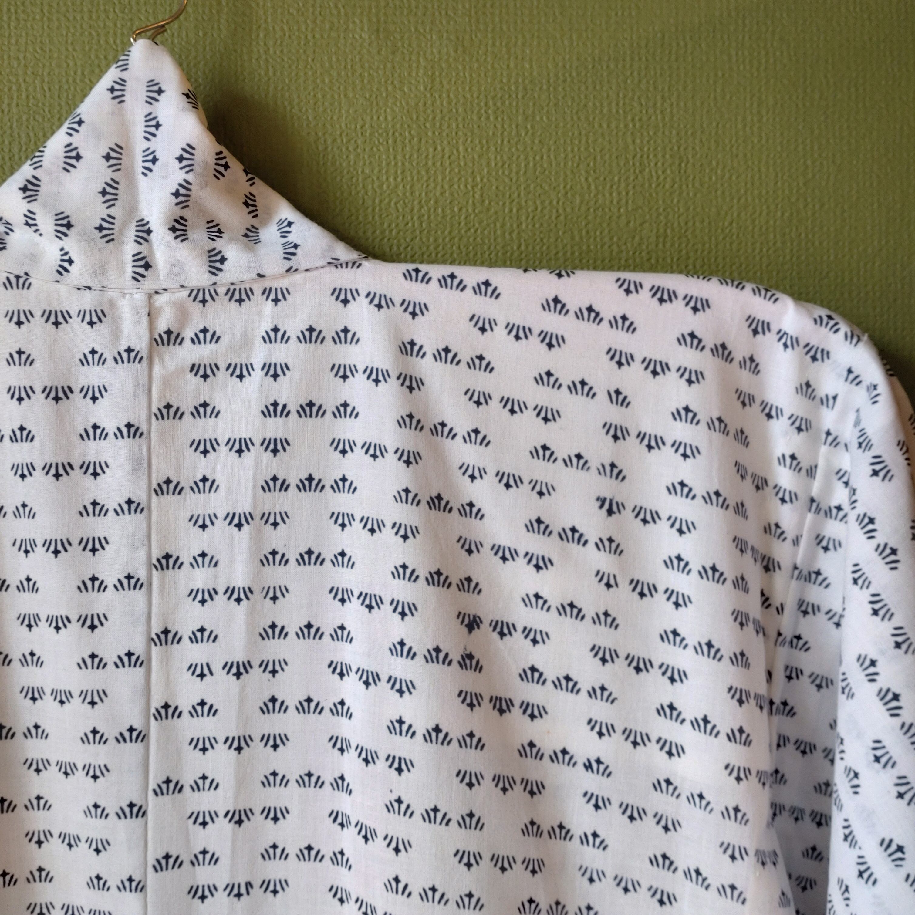 着用時見えない部分(背中の真ん中あたりや広衿の内側にくる部分)に一部掠れなど染めの不安定な部分があります。汚れはなくコンディション◎