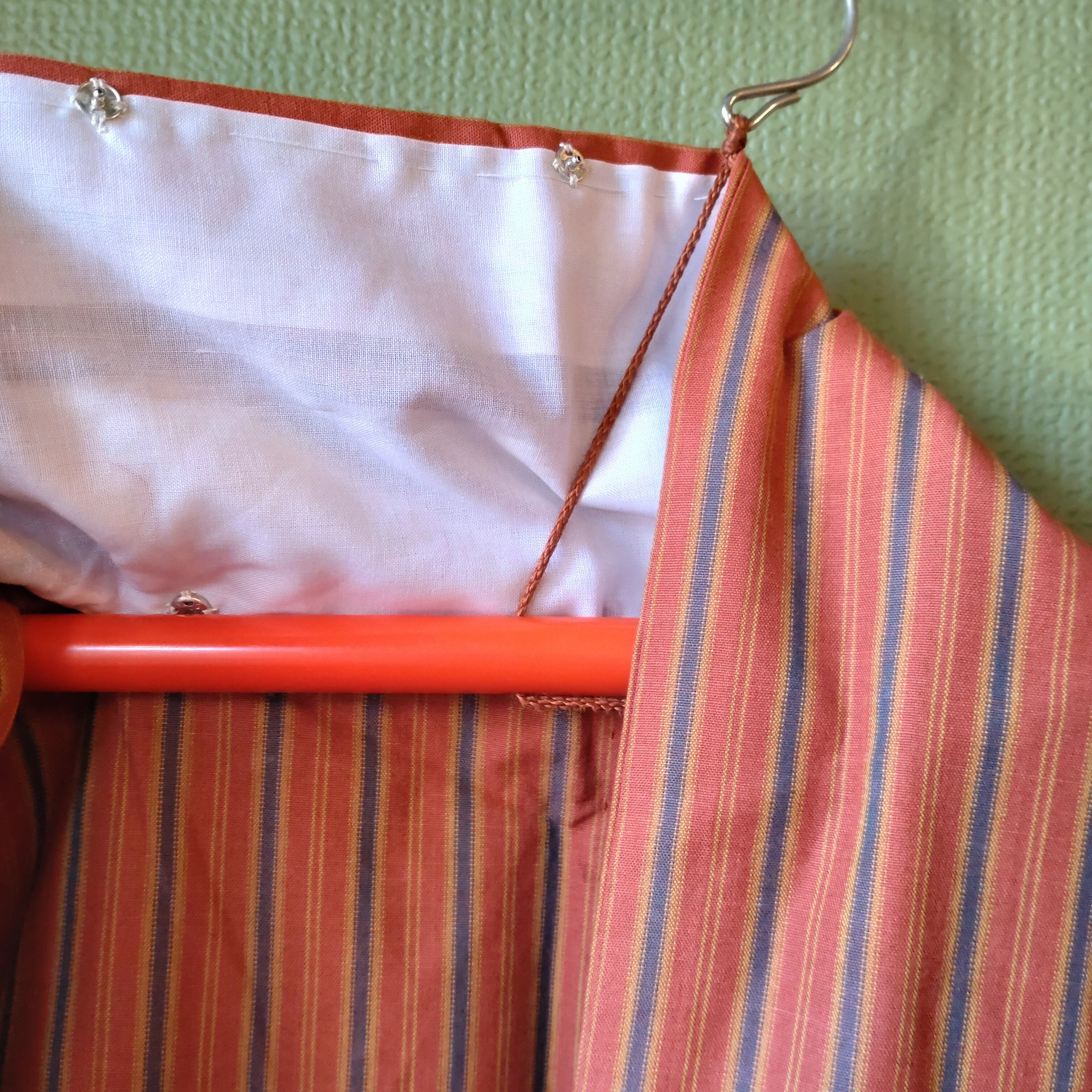 綿の単衣着物です。なんの変哲もないシンプルな着物ですが、ブロードのシャツのような安心感のある普段着。白や紺の帯を合わせてスッキリ浴衣風に着てもいいし、秋は襦袢を着て茶色やグリーンを合わせたコーディネートも素敵。