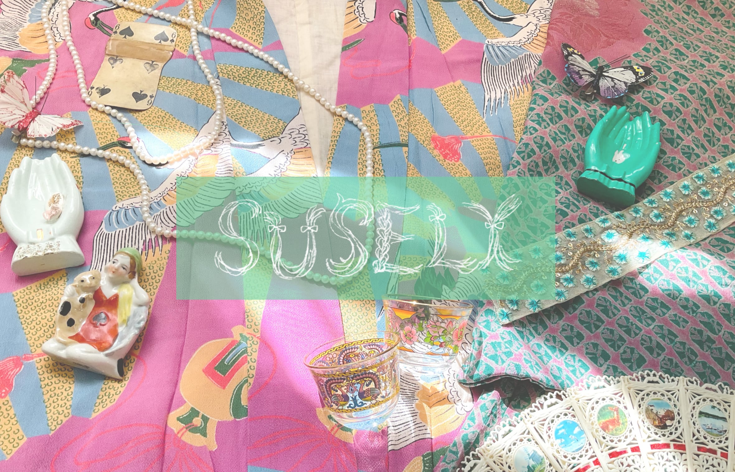 薄いオリーブ色にちょこっとオレンジが入ったうにょうにょ柄がモダンなアンティーク袷です。