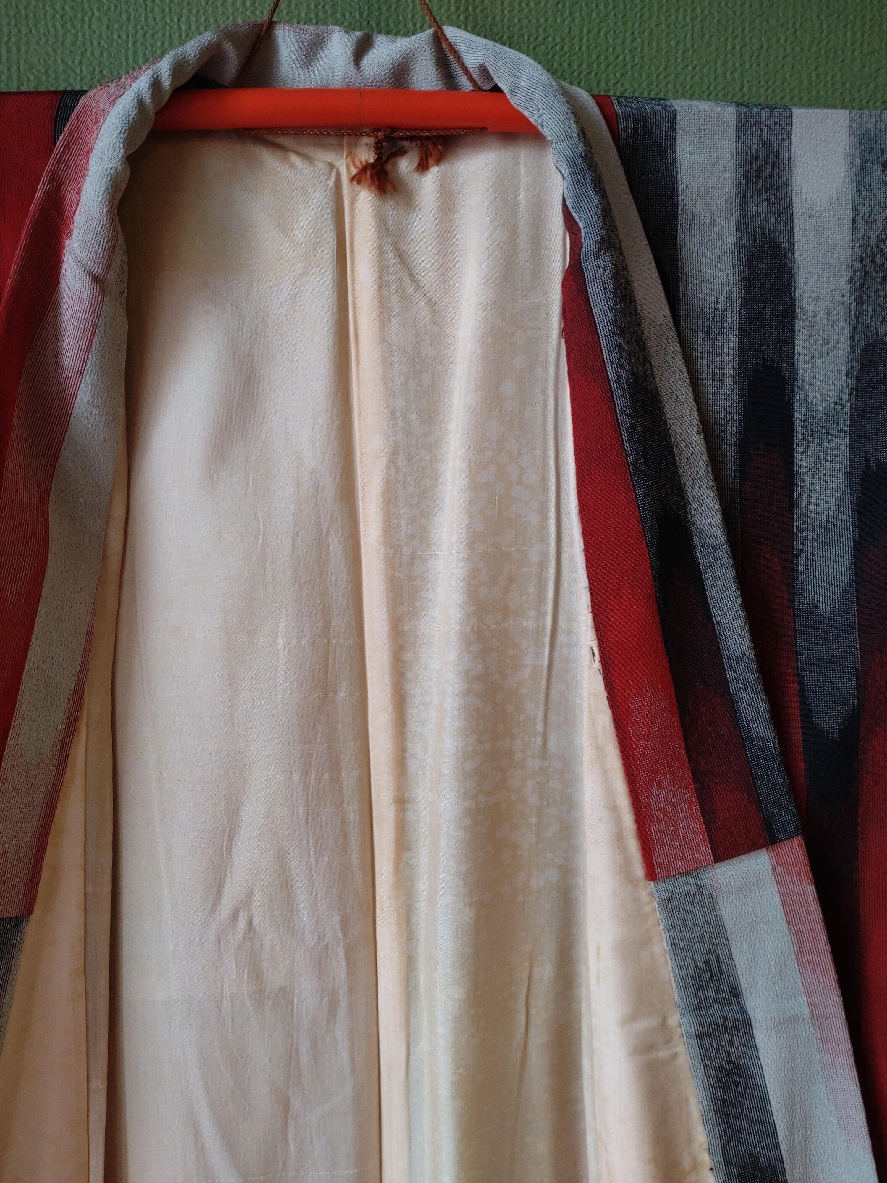 塩瀬のアンティーク袷着物です。ゆっくり流れ落ちるような暈しの柄が優雅です。