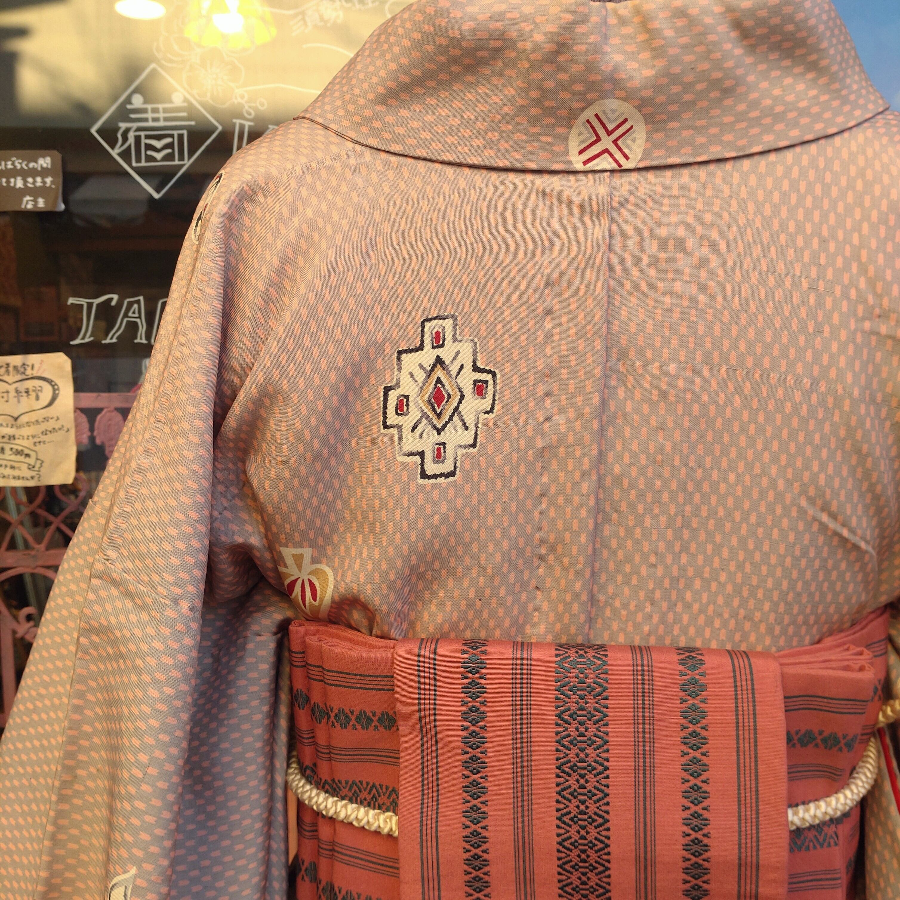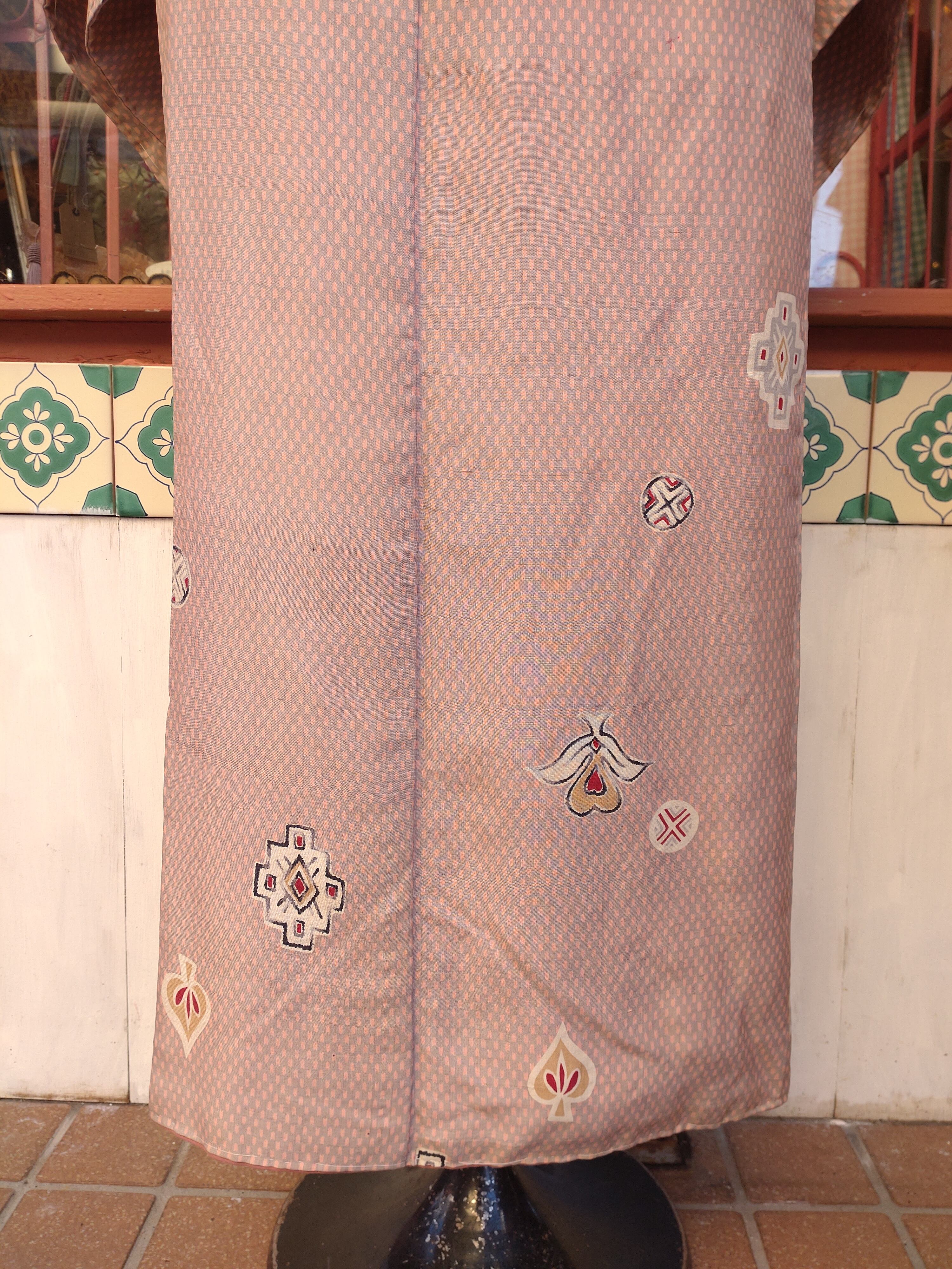 よく見るとグレーにピンクの小さな矢羽柄。ハートやなんとも言えない十字の柄がランダムに配置されています。
